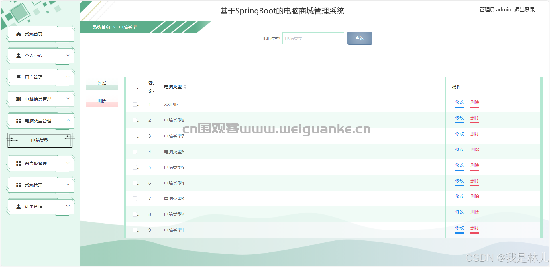 电脑类型管理:管理员可添加、编辑和删除电脑产品类型。