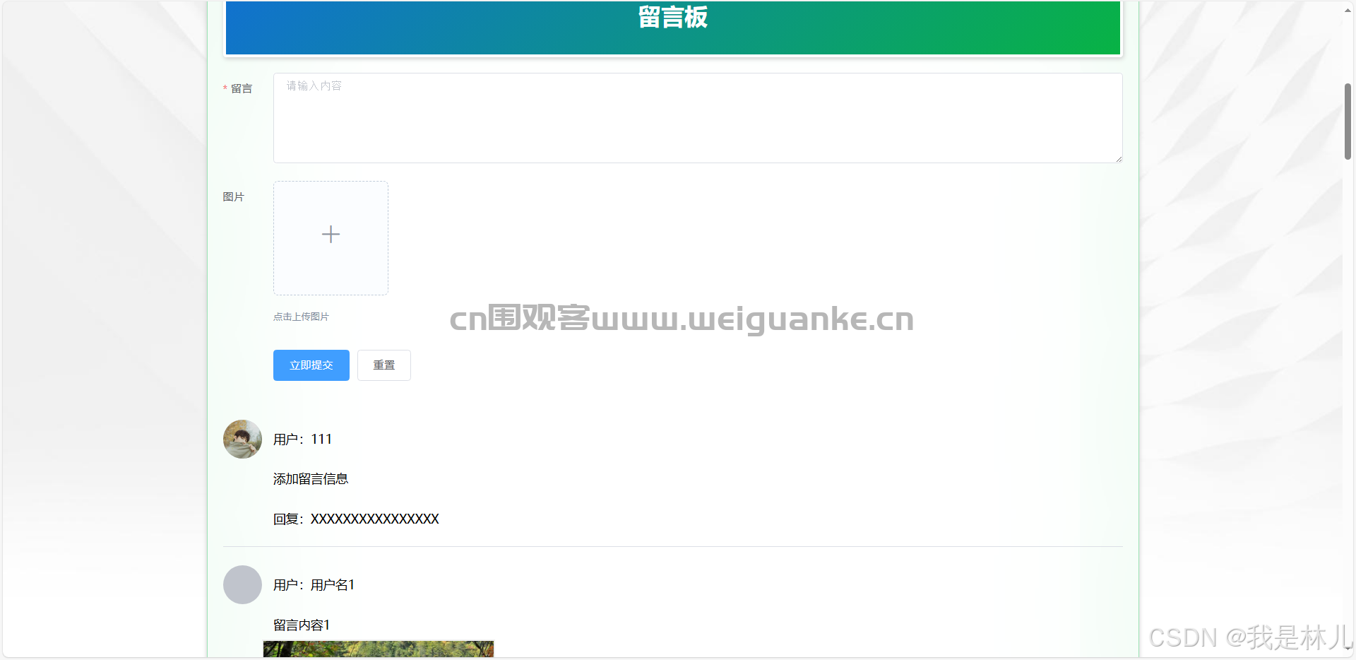 实现方式:提供留言板页面,支持留言发表和回复功能。