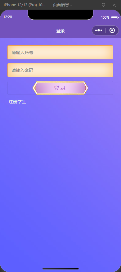 登录:学生可以通过输入学号和密码进行登录。登录界面如图所示,具有输入框和登录按钮。