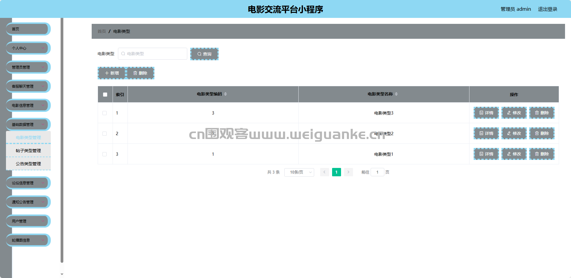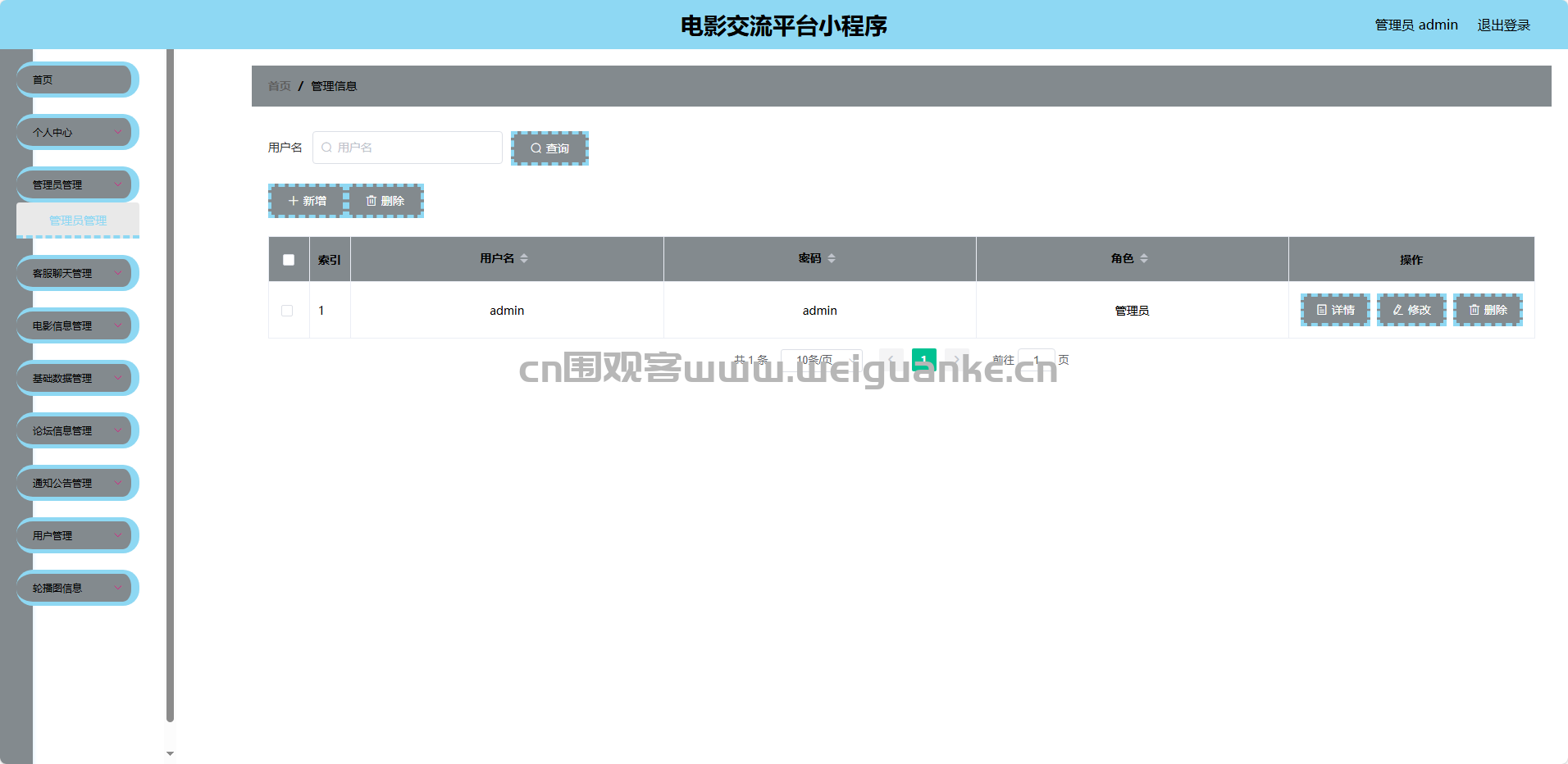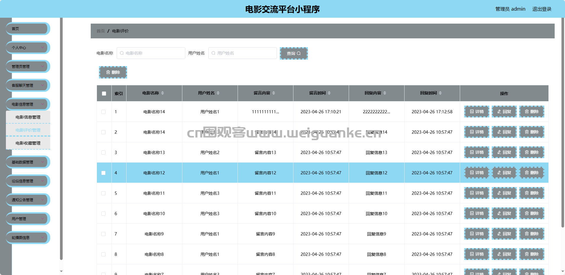 电影评价管理:管理员可以管理用户对电影的评价和留言。