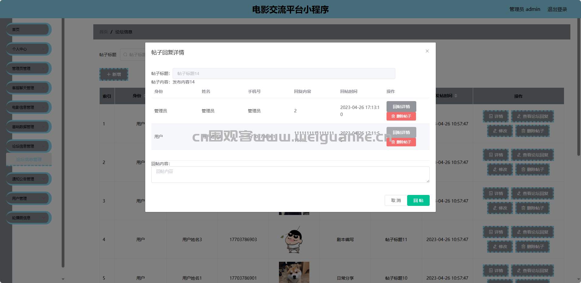 论坛信息管理:管理员可以管理论坛的帖子和回复。