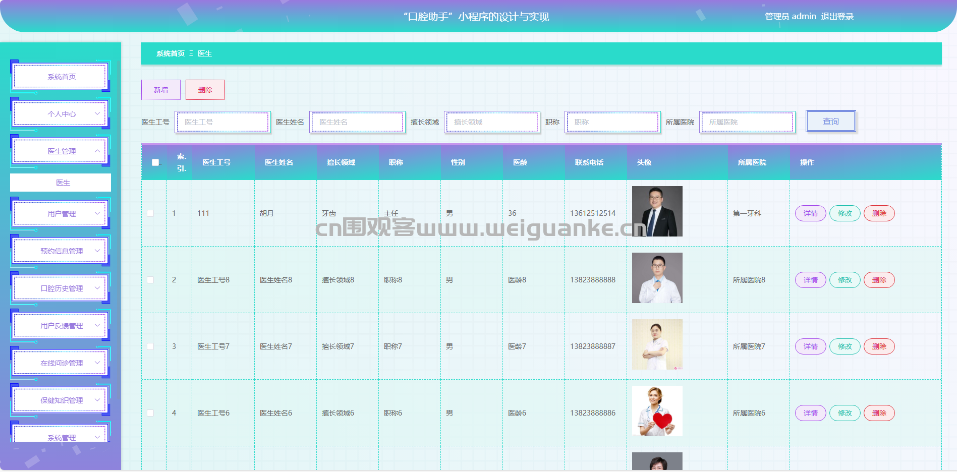 口腔历史管理: 管理员可以管理口腔健康历史记录。