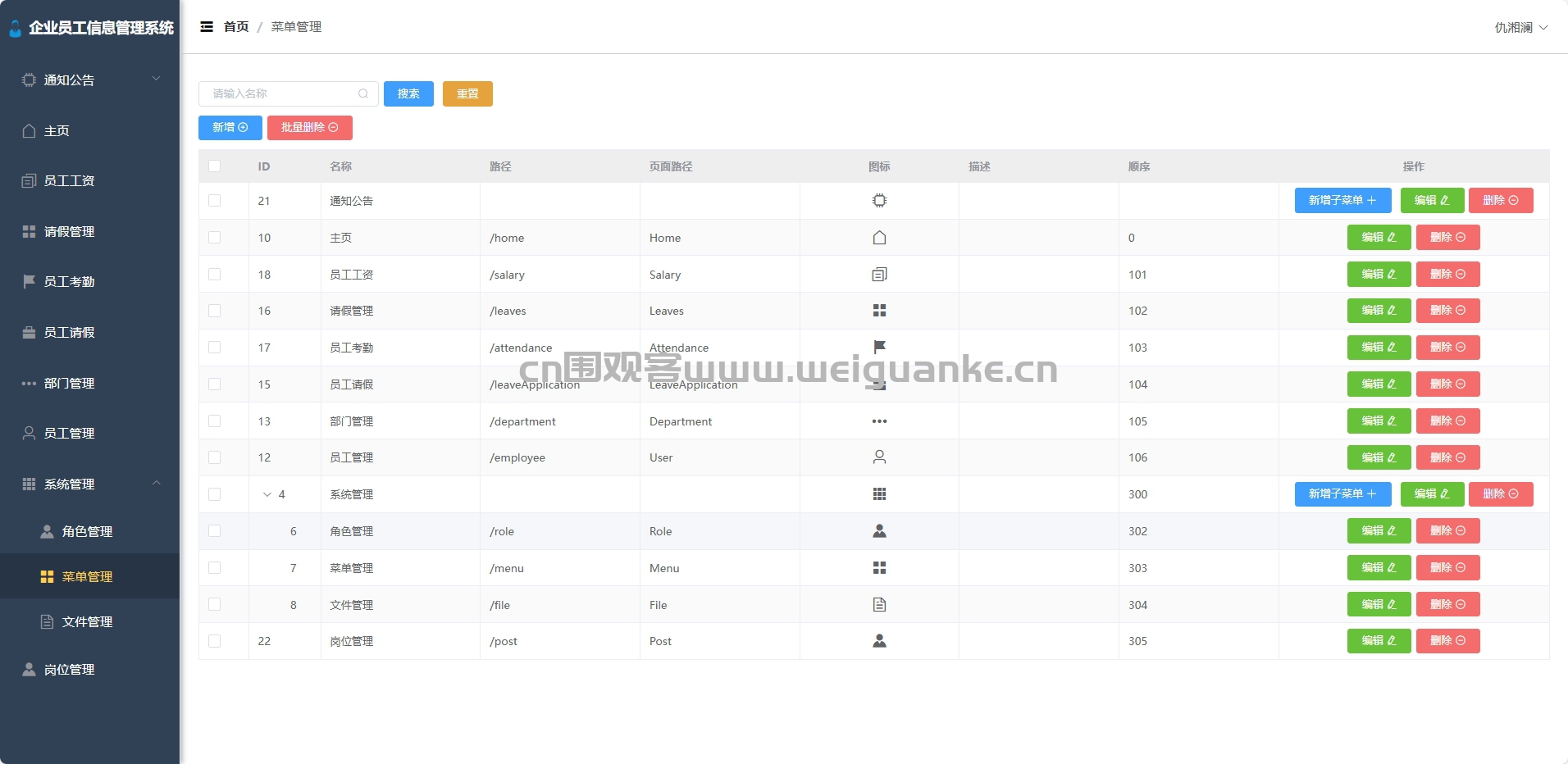 菜单管理:自定义系统功能菜单,适配企业个性化需求。