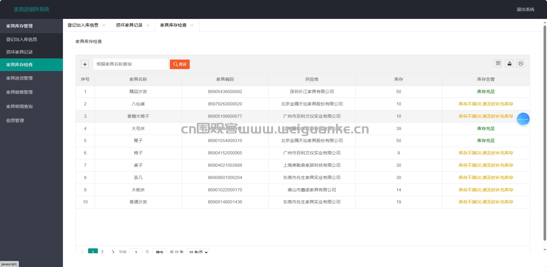 家具库存管理:全面管控家具库存,确保库存数据准确。