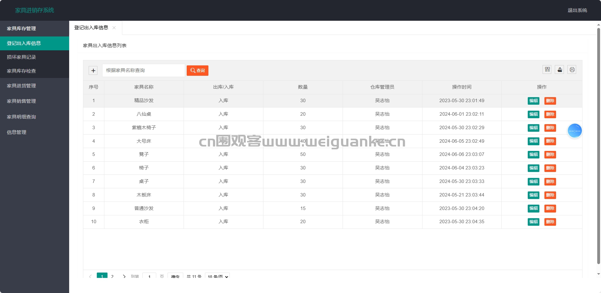 登记出入库信息:记录家具出入库情况,便于库存追踪。