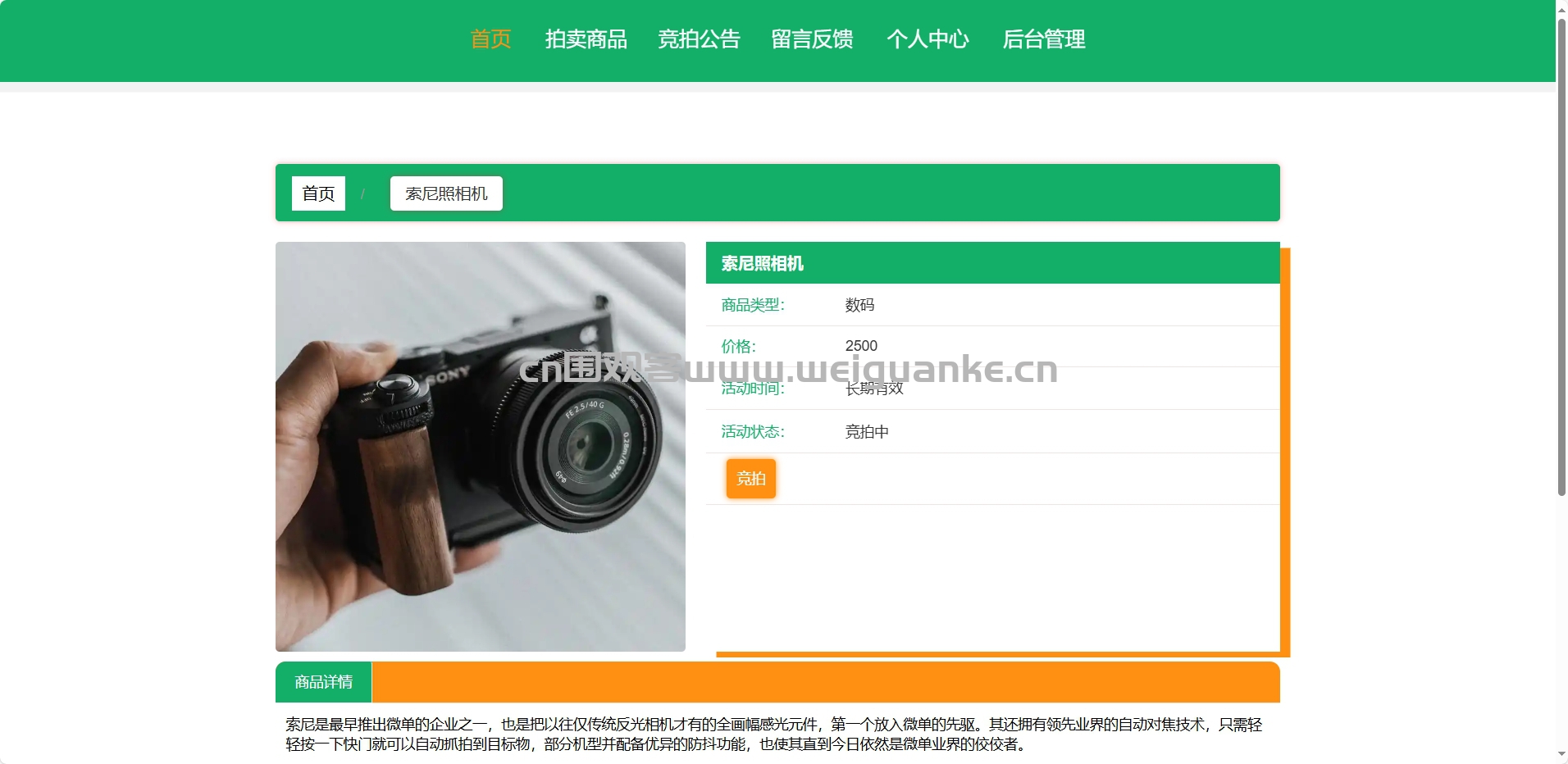 拍卖商品: 展示当前可参与竞拍的商品信息,包括商品详情、起拍价、竞拍时间等。