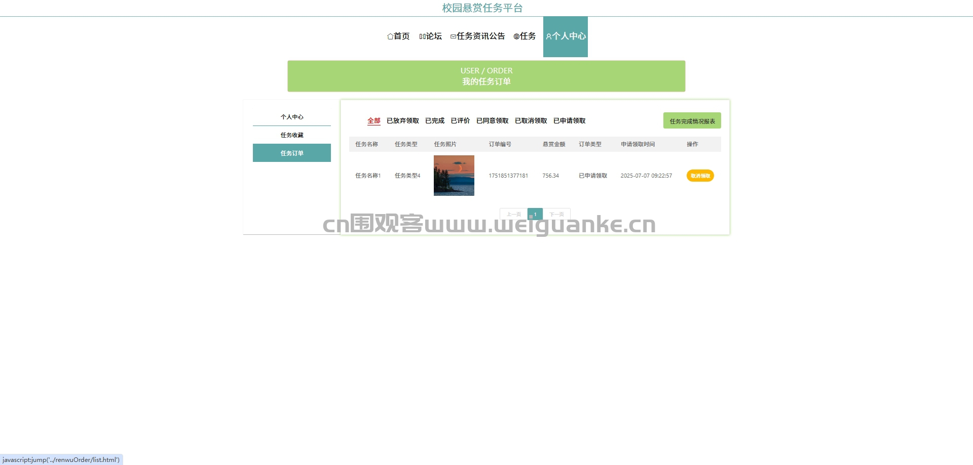 任务订单管理:发布用户可以查看所有自己发布的任务订单的详细信息
