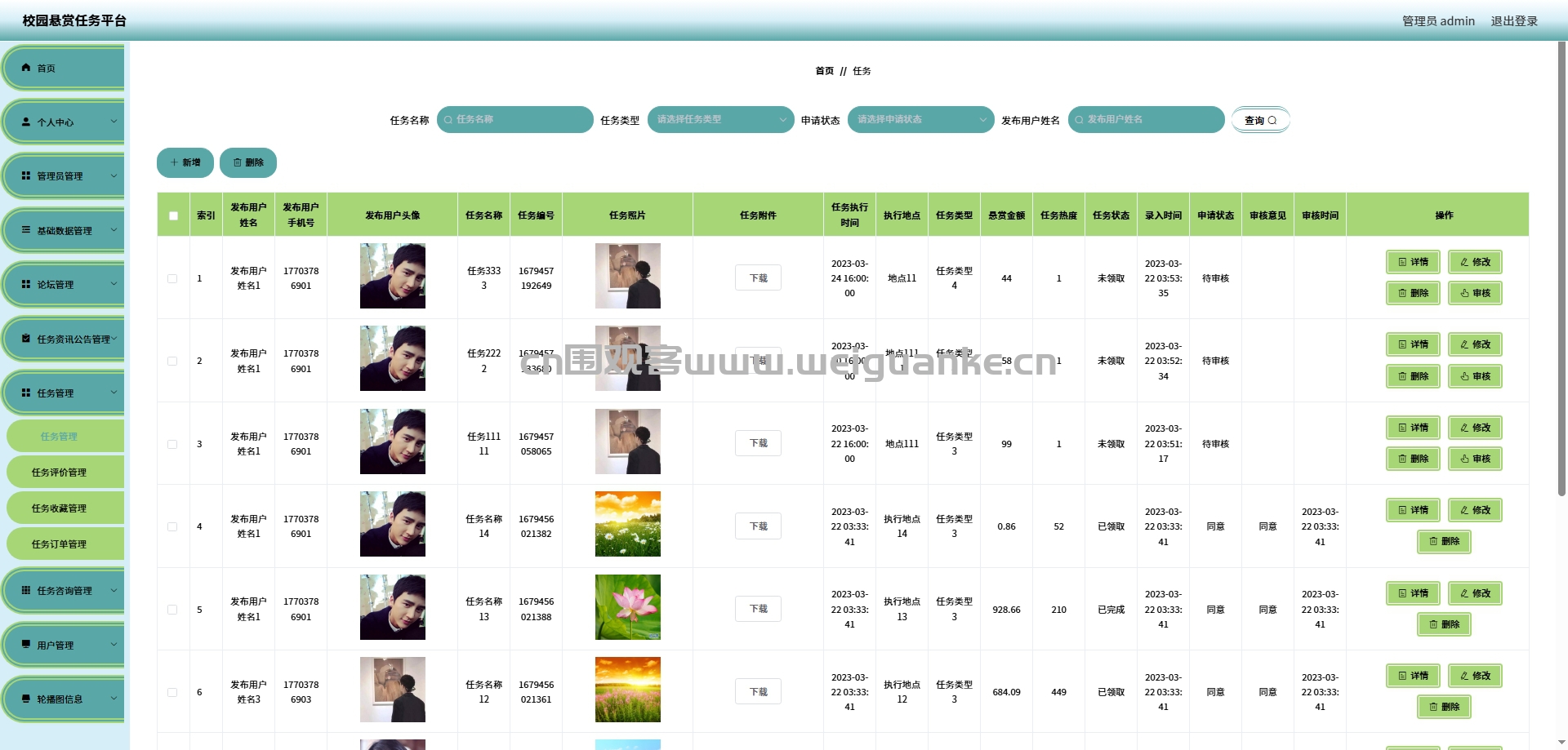 发布、编辑、删除任务资讯公告