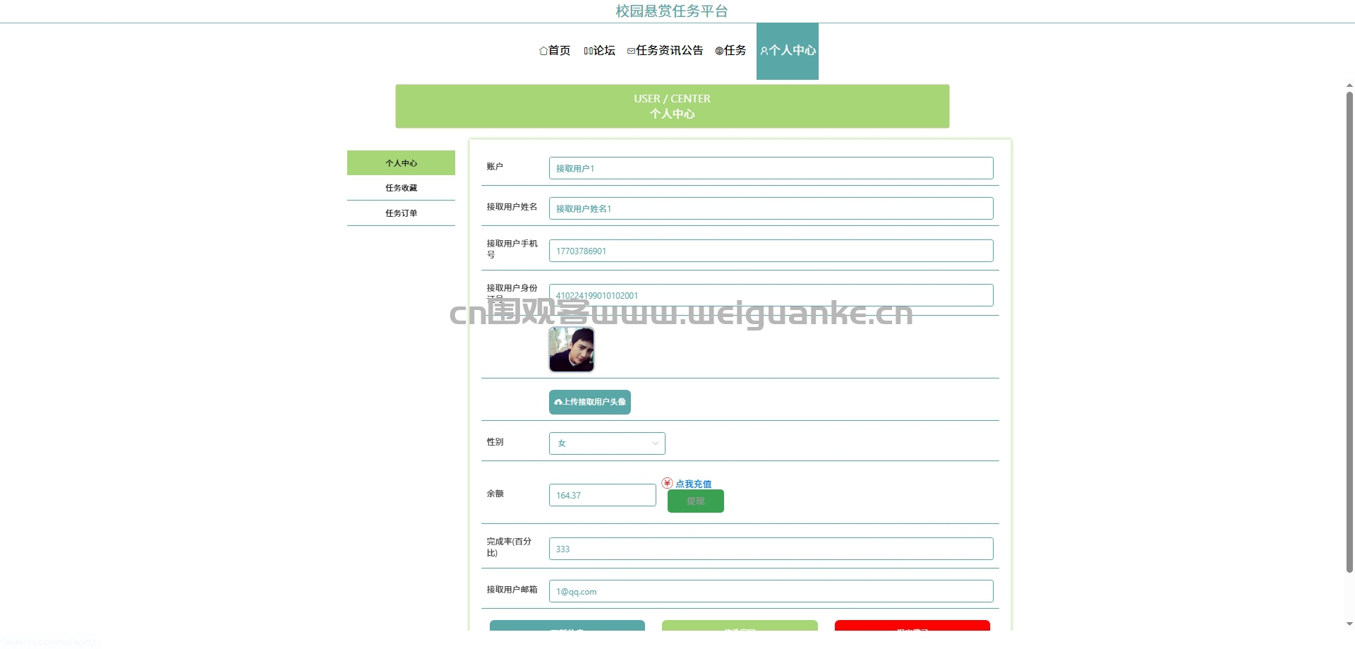个人信息:发布用户可以查看和修改自己的个人信息