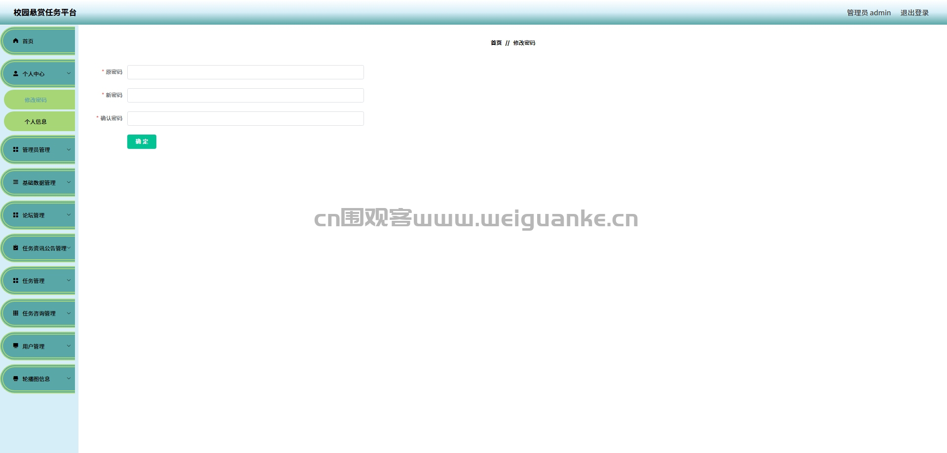修改密码:管理员可以在这里修改自己的登录密码