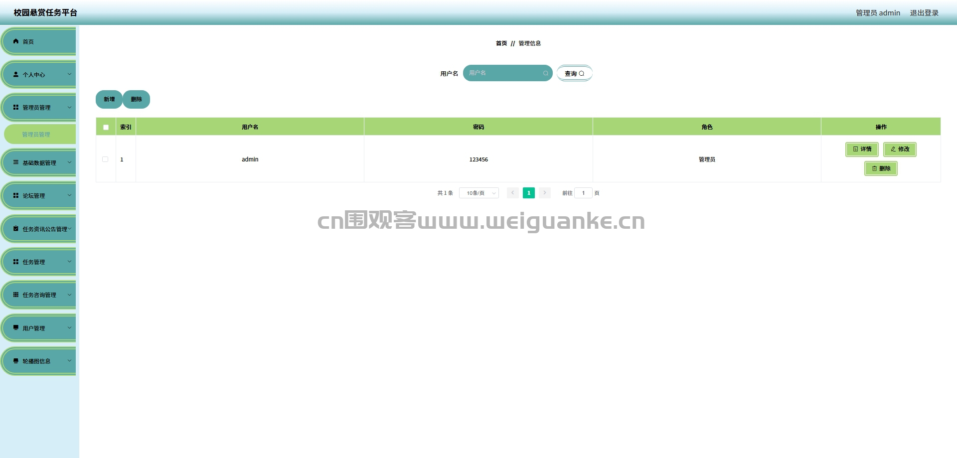 个人信息:管理员可以查看和修改自己的个人信息