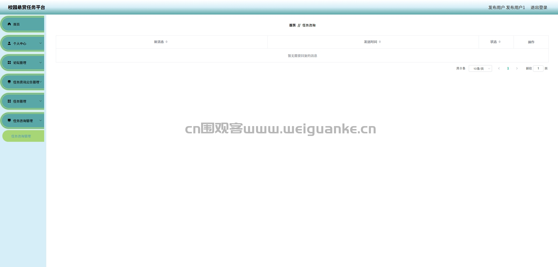 发布用户可以在这里管理与任务相关的咨询信息