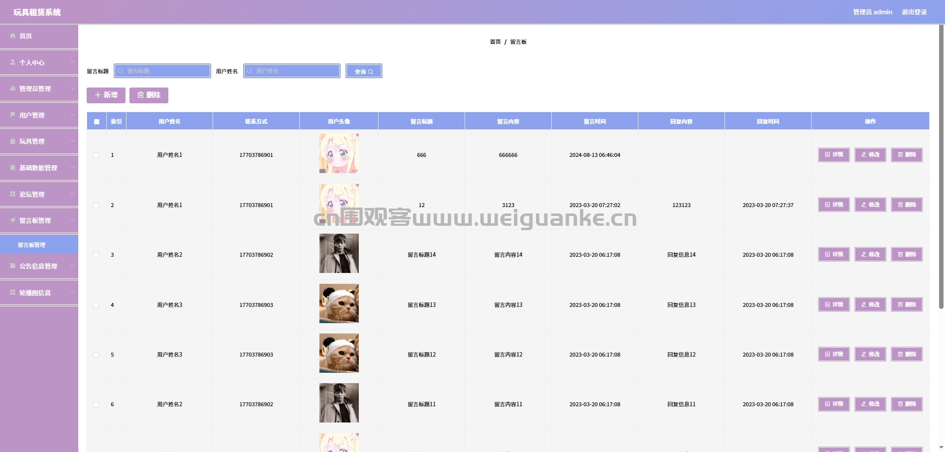 玩具管理:管理员可以添加新的玩具、修改玩具的信息、删除玩具等