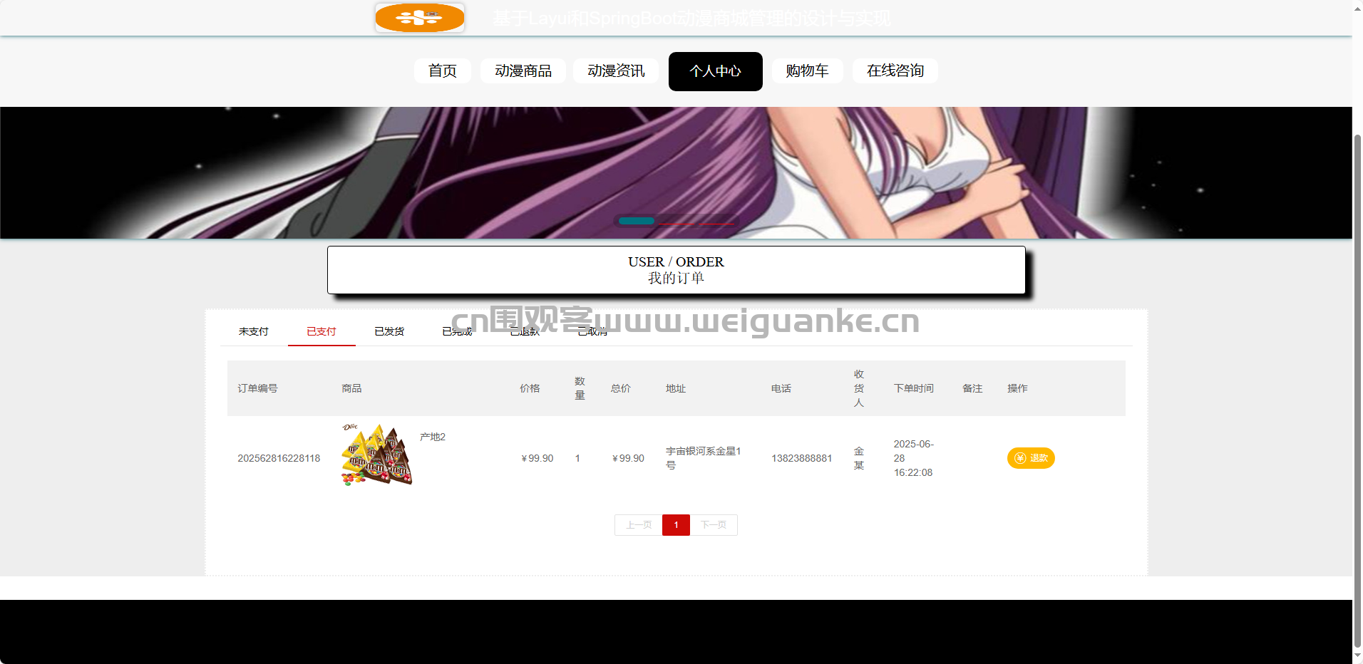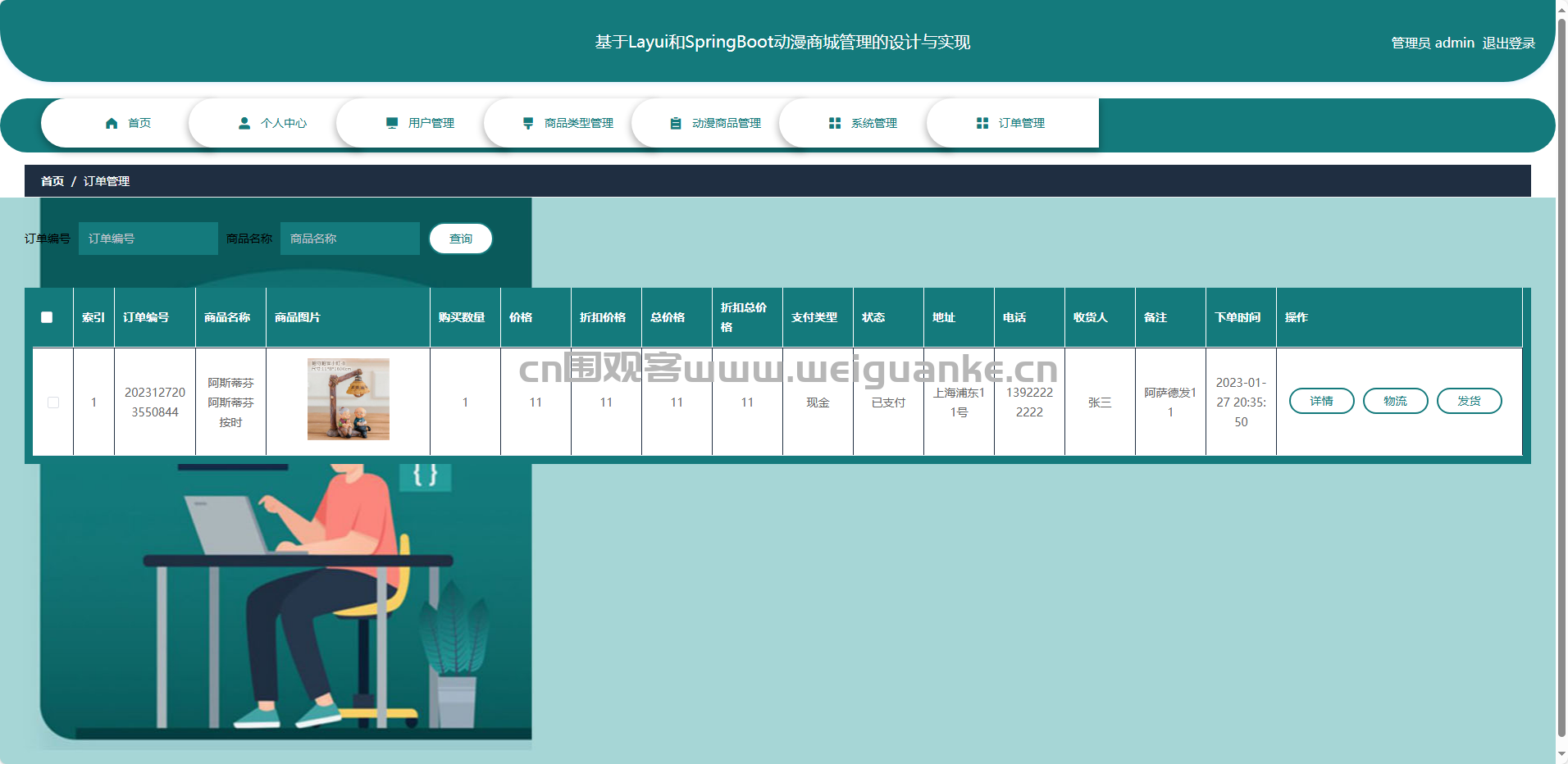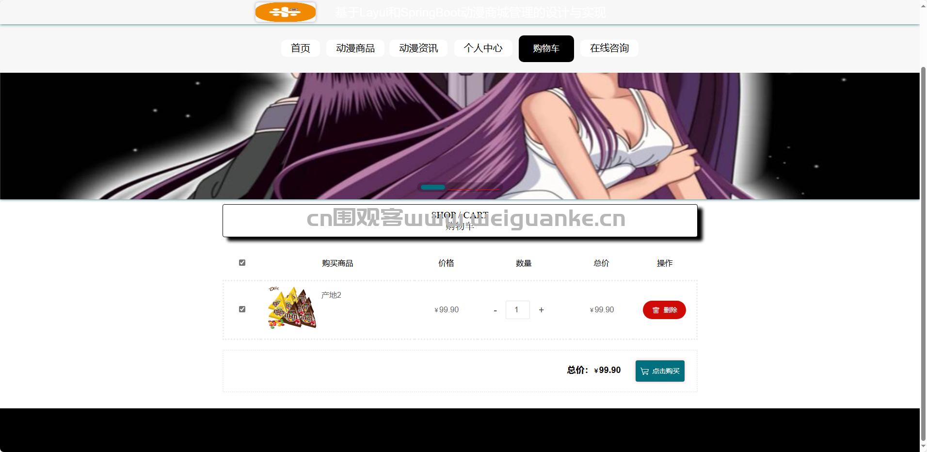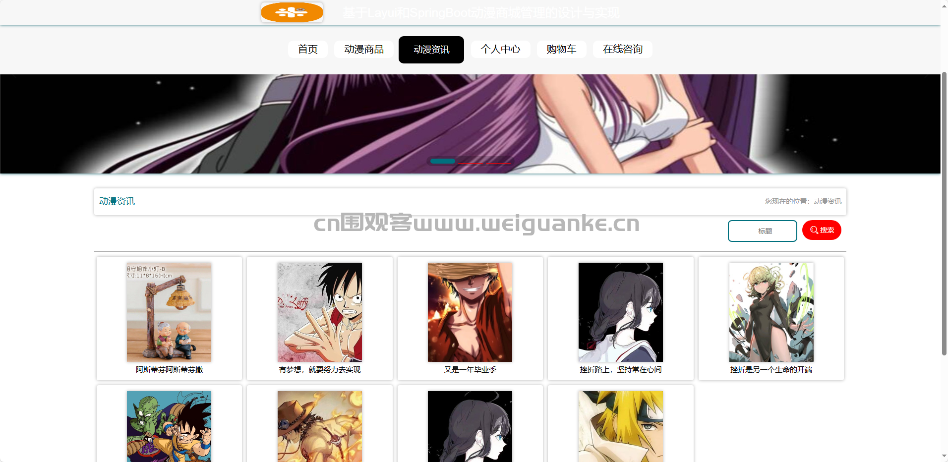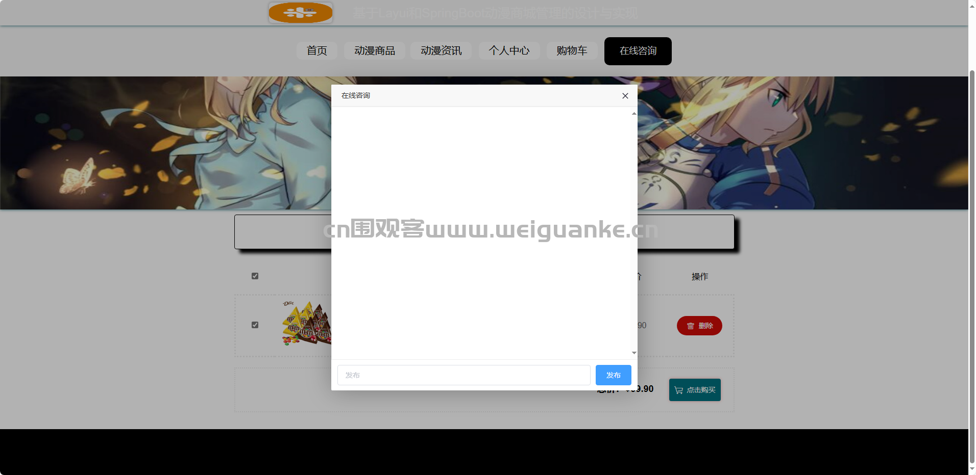 基于springboot+vue的动漫商城管理系统。通过springboot,vue框架进行开发