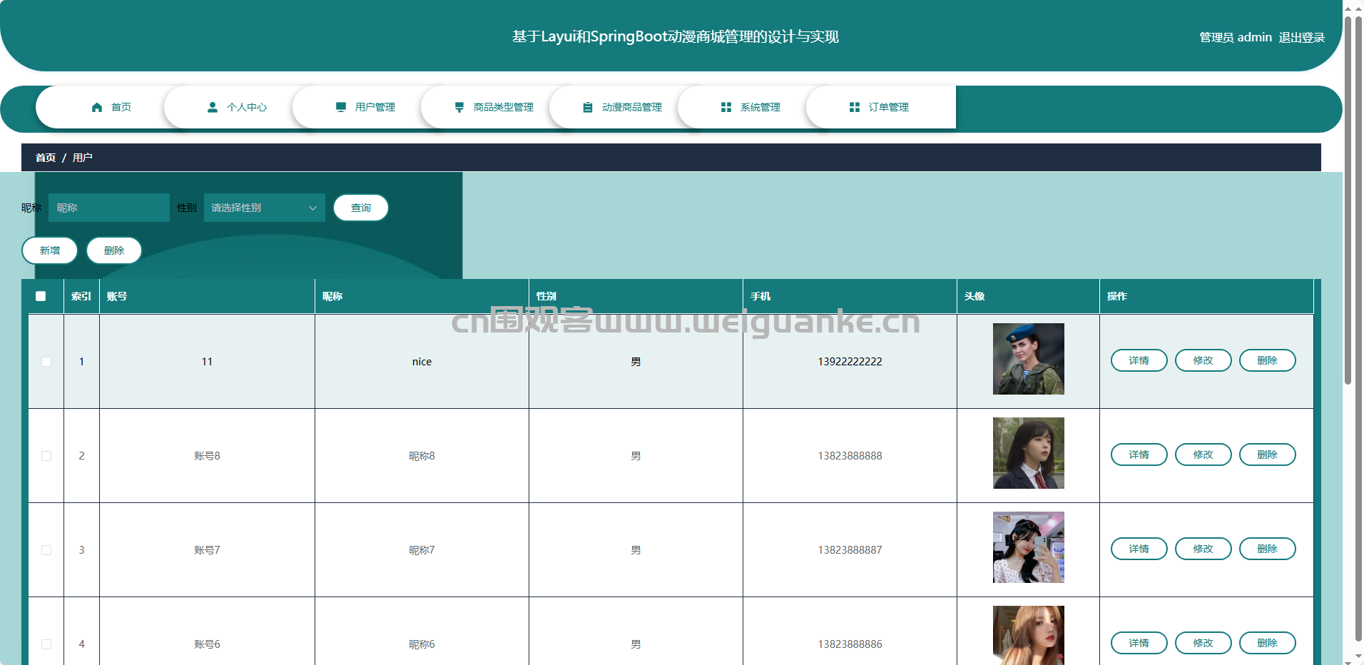 添加/编辑/删除动漫商品信息