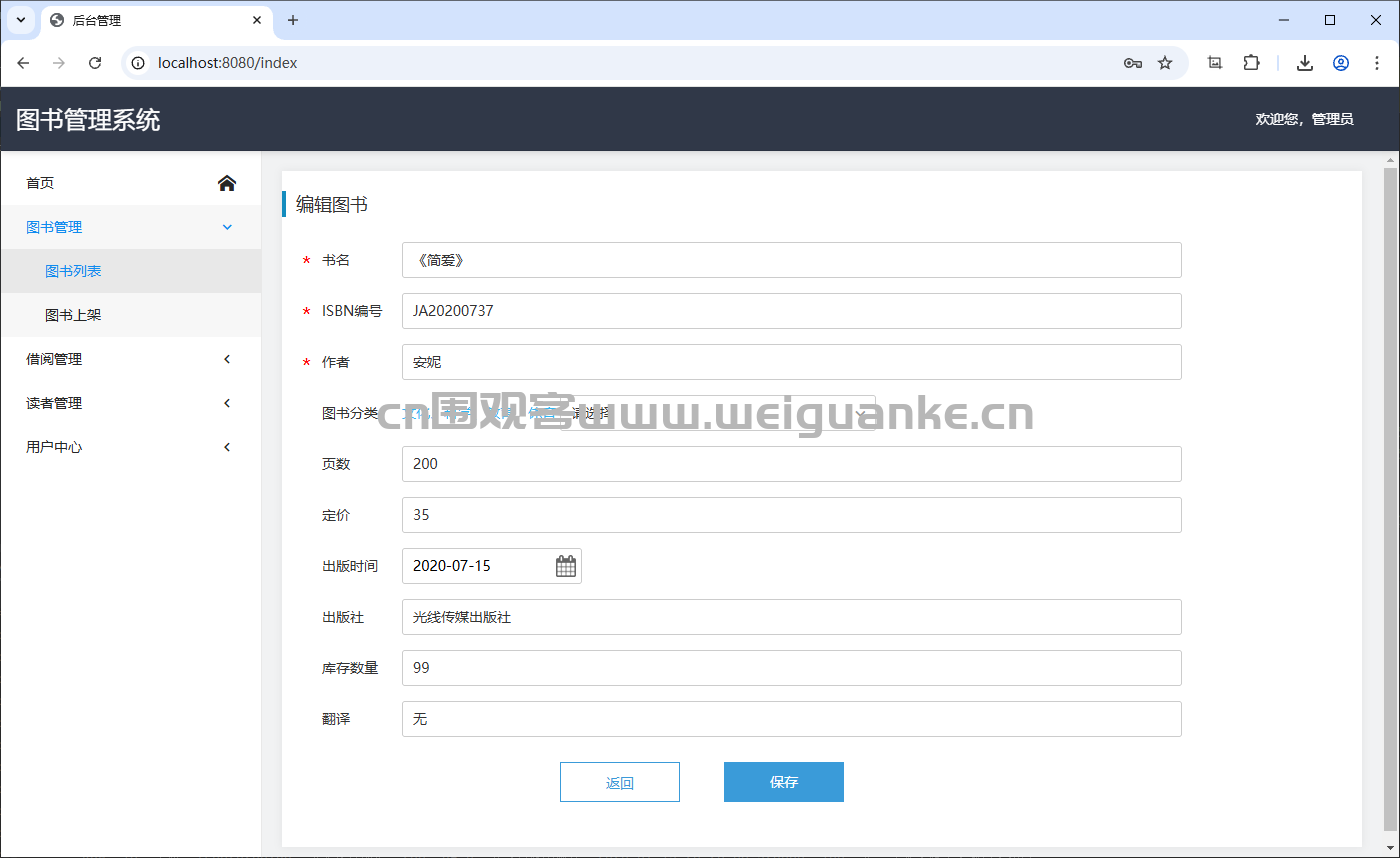 添加、编辑和删除图书信息。