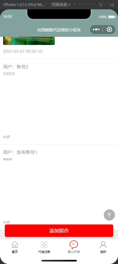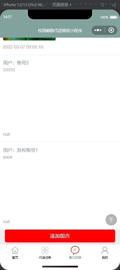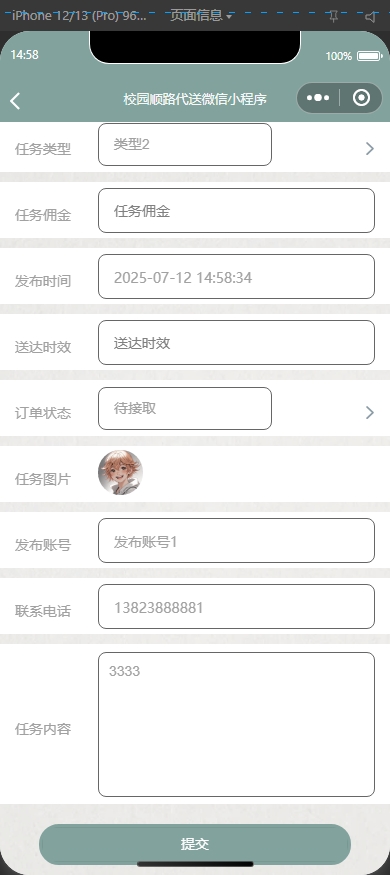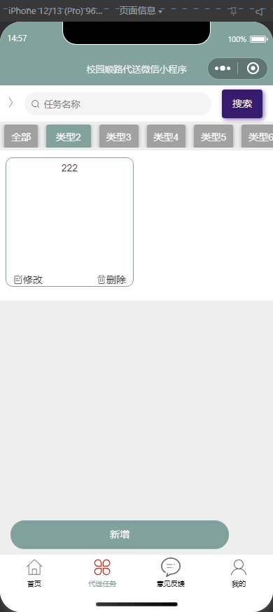 本项目是一个基于小程序+SSM技术构建的校园顺路代送系统。该平台旨在为用户提供一个方便快捷的校园顺路代送环境。
