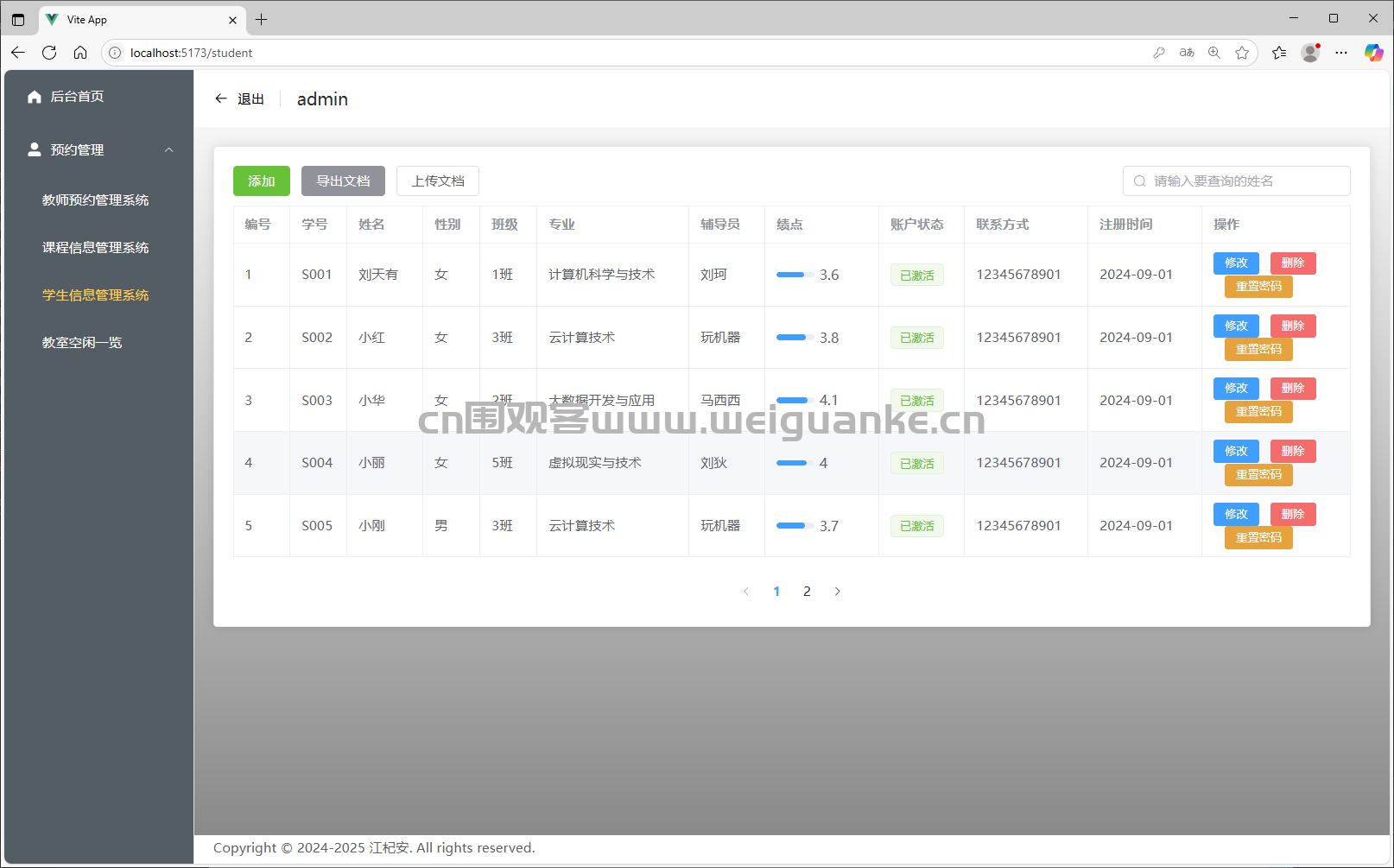 批量操作:支持导出学生信息到Excel(学生信息表.xlsx)或上传文档更新数据。