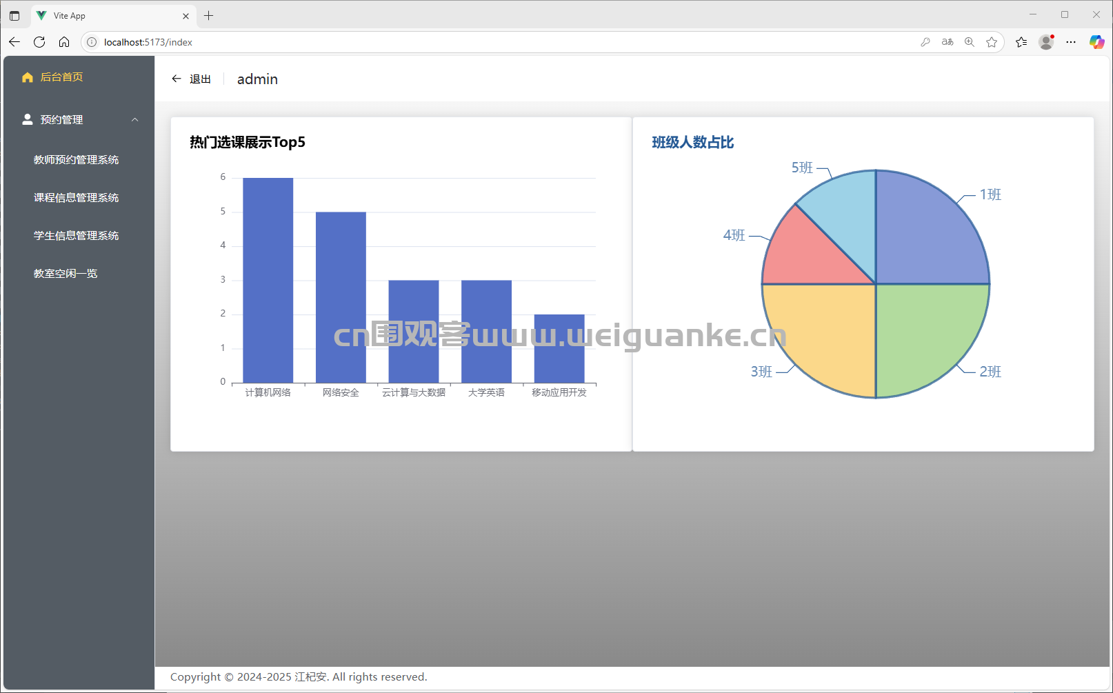 热门选课Top5:展示选课热度前5的课程(计算机网络、网络安全、云计算与大数据等)。