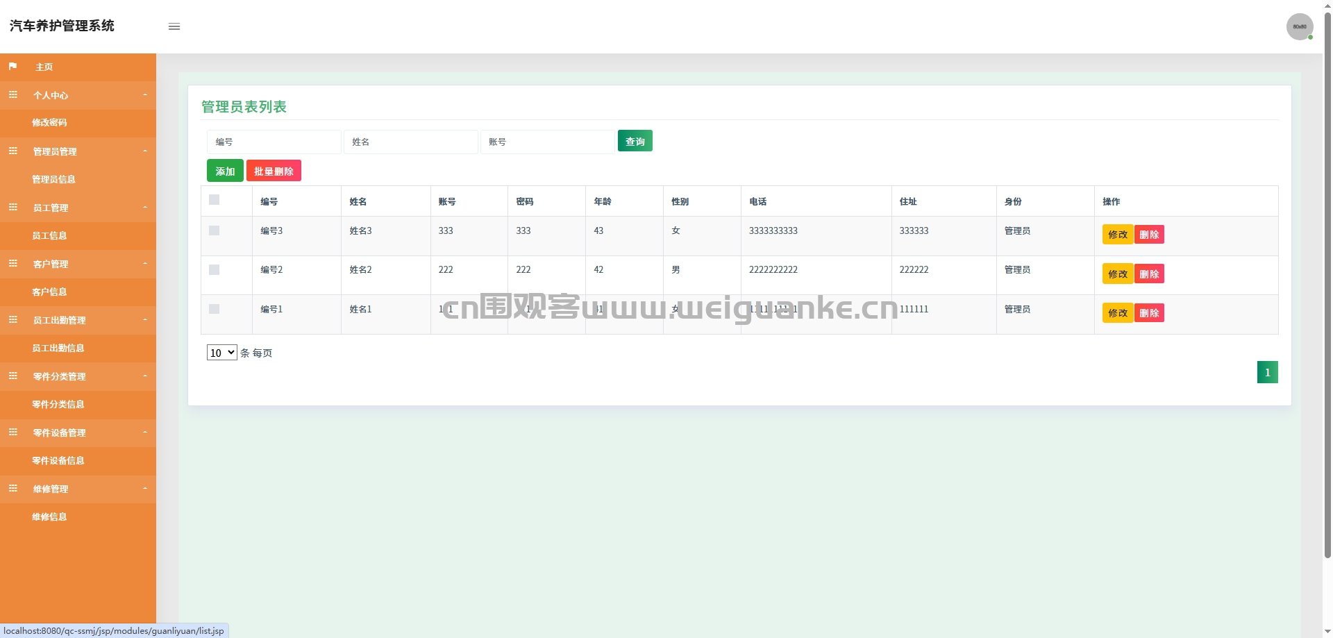 前端:http://localhost:8080/qc-ssmj/jsp/login.jsp