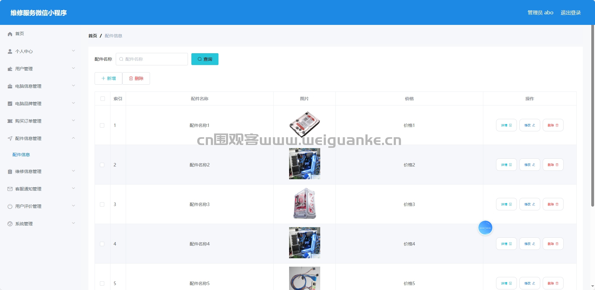 配件信息管理:录入、查询和更新电脑配件信息的模块。