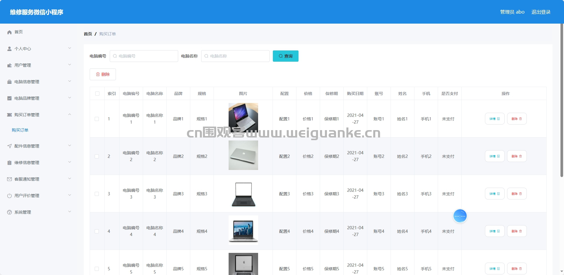 购买订单管理:创建、查看和管理电脑购买订单。