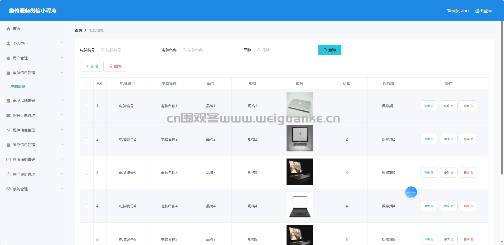 电脑品牌管理:对电脑品牌进行添加、编辑和删除等操作的模块。