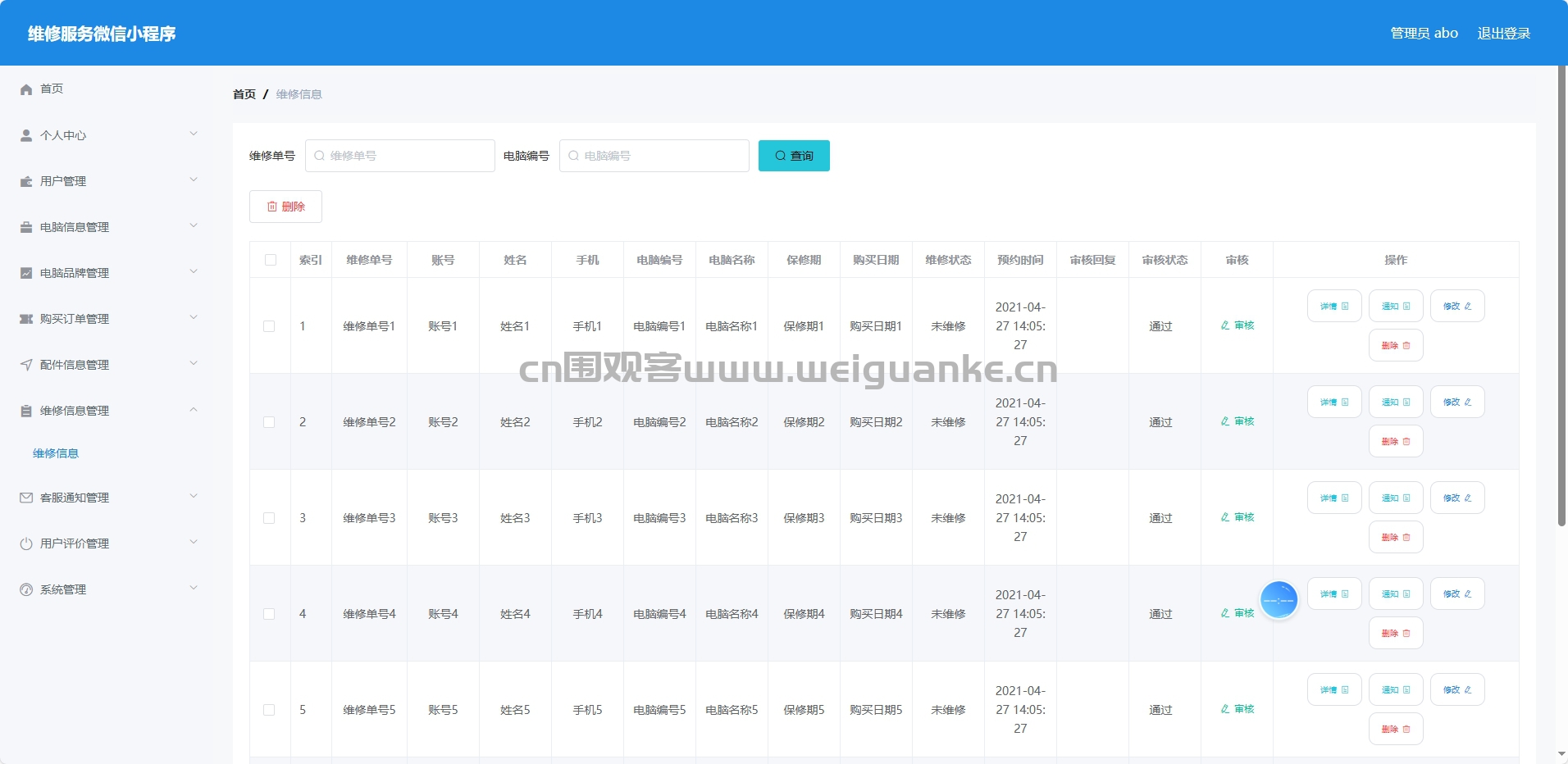 维修信息管理:记录、查询和管理电脑维修信息的模块。