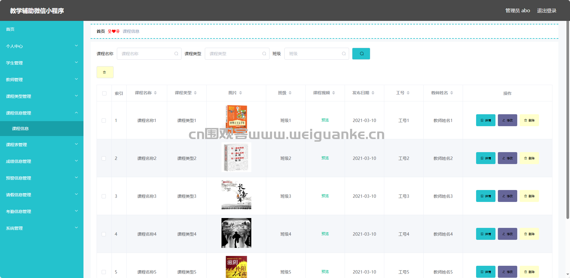 课程信息:管理自己所教授的课程,包括课程安排、教学资料上传等。