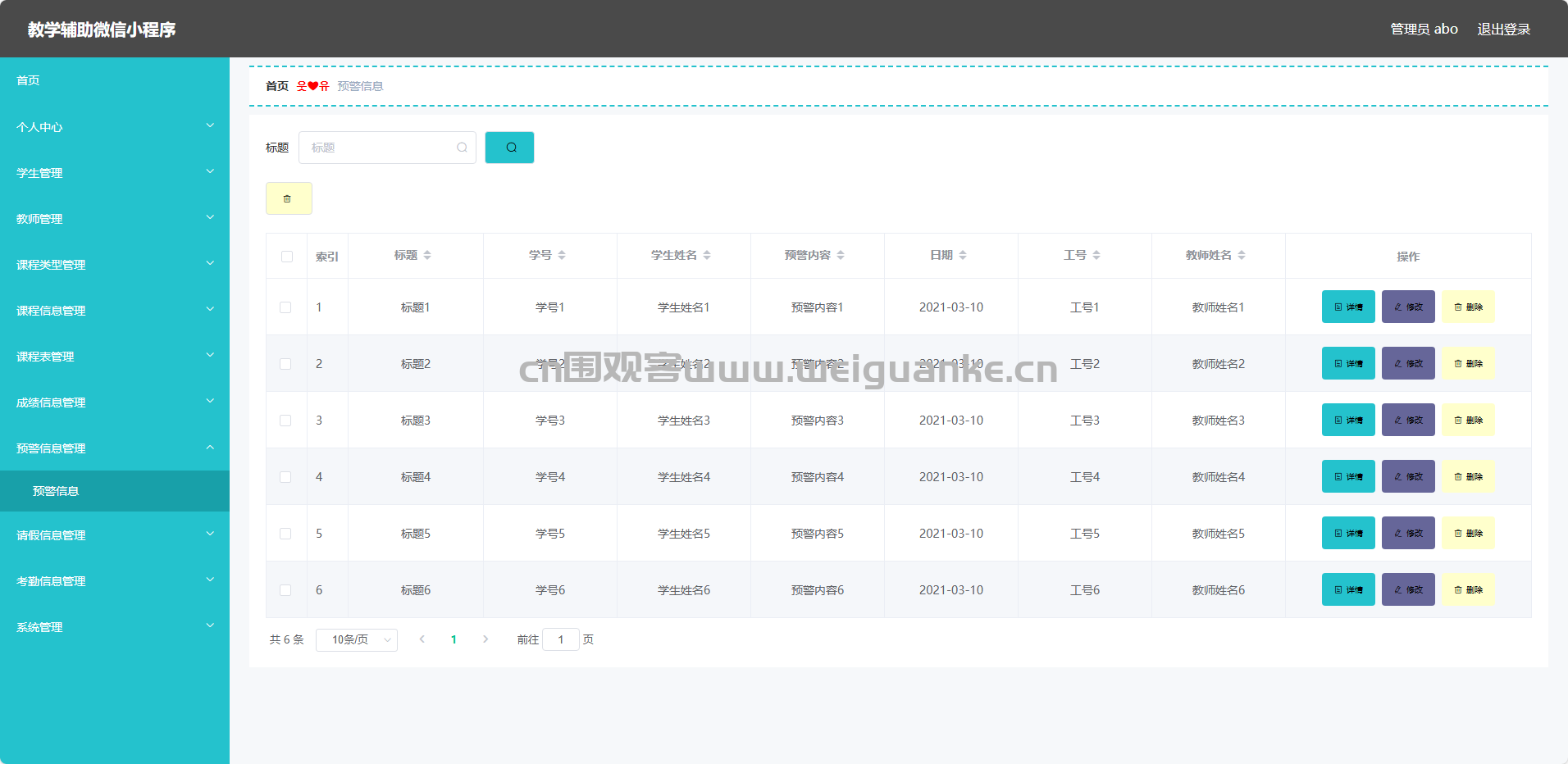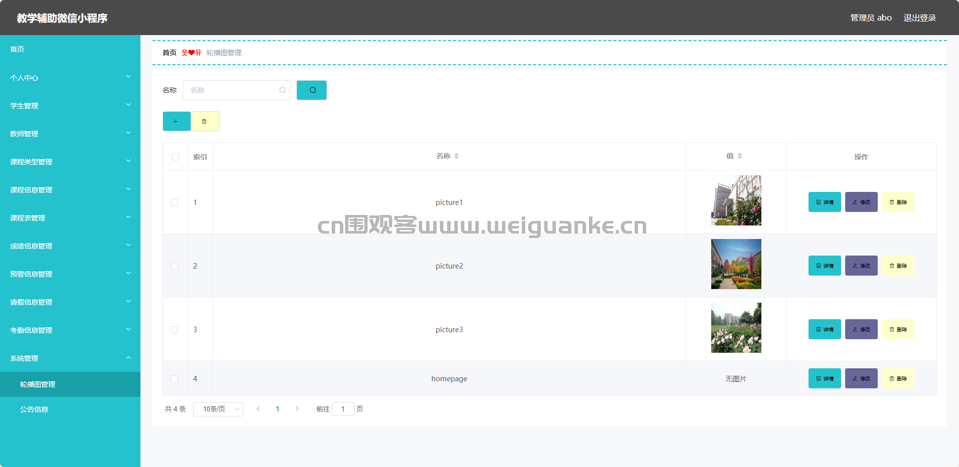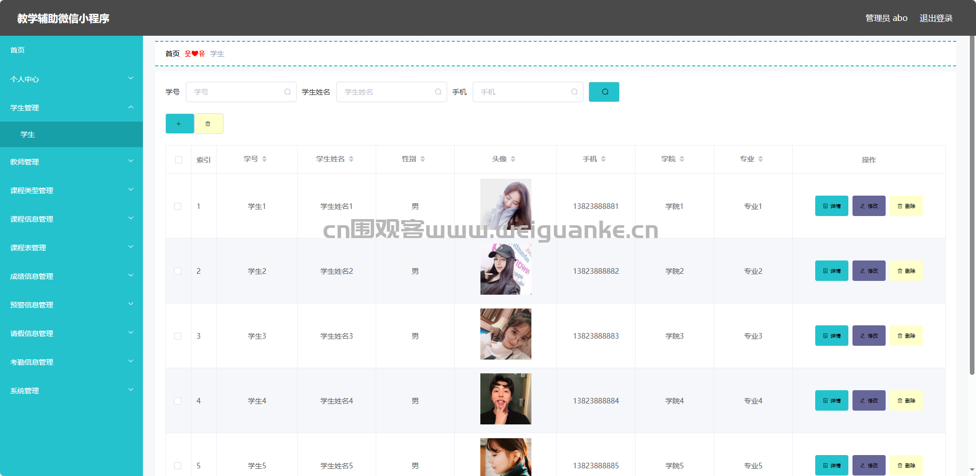 教师管理:管理教师账户,包括添加、删除、修改教师信息。