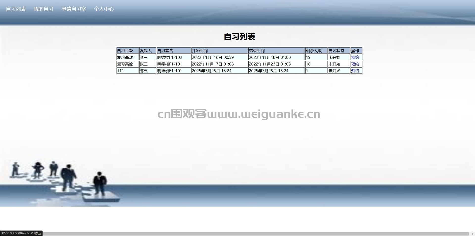 自习列表:打开后自习室预约