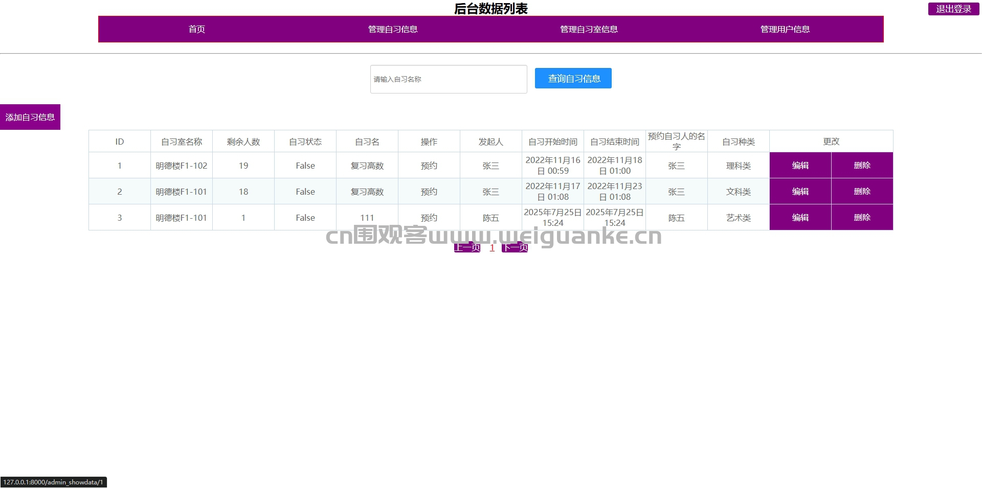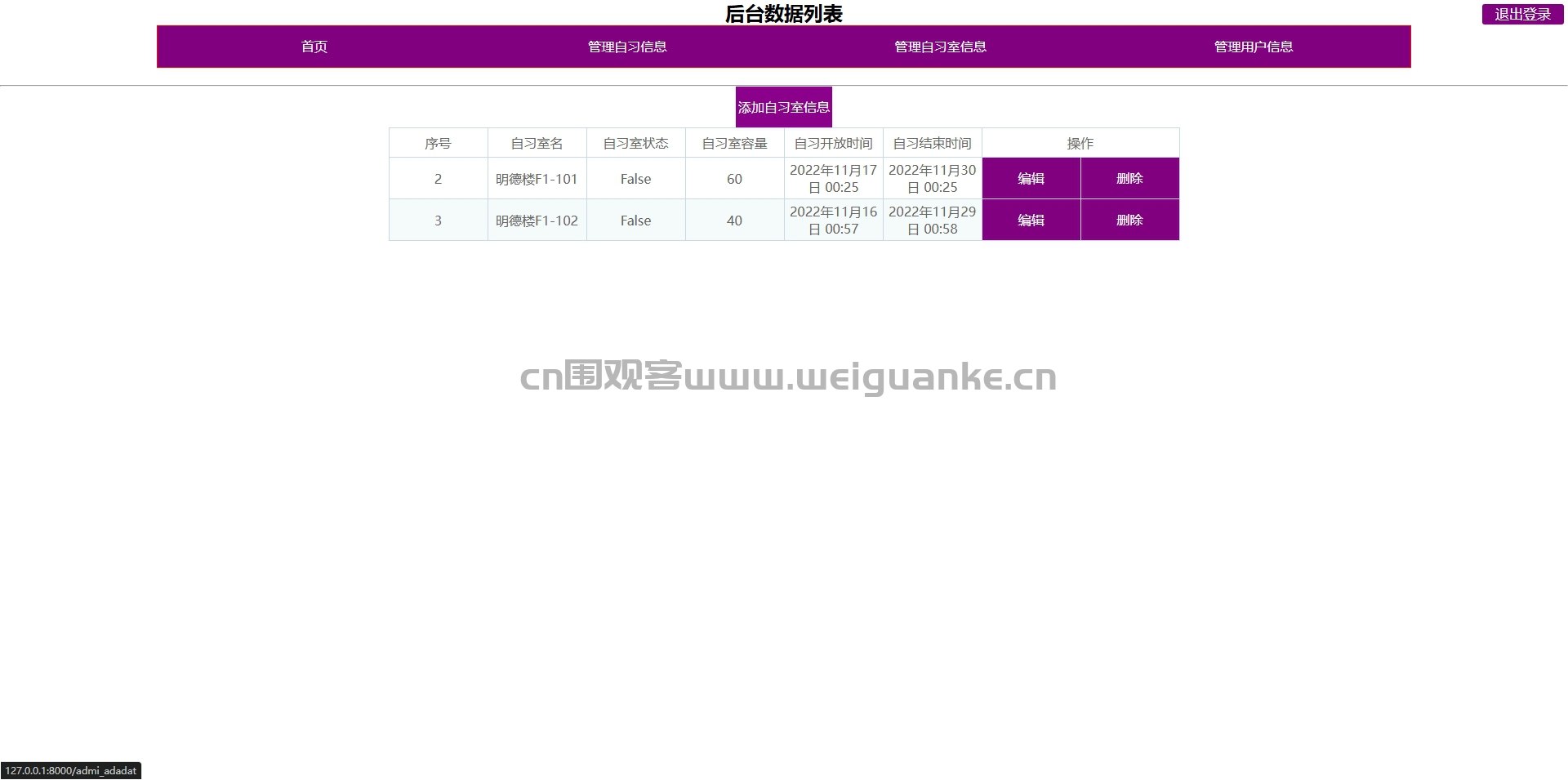 管理自习室信息: 管理自习室的基本信息