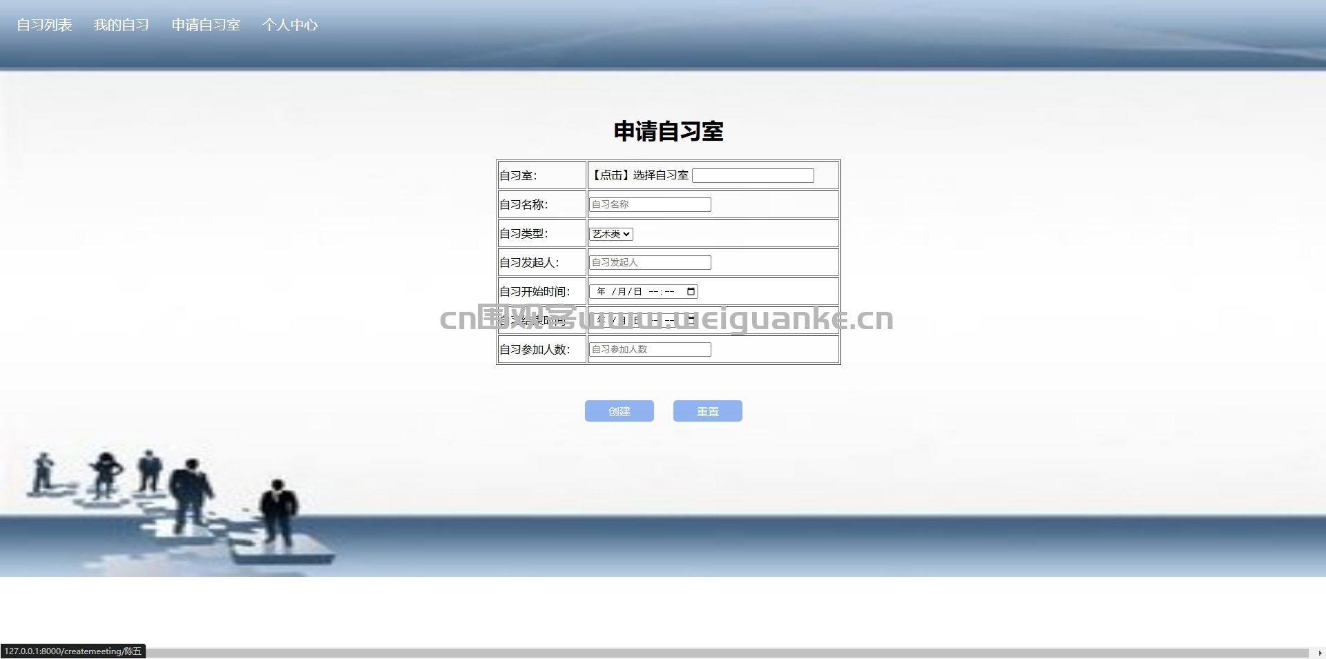申请自习室:再此页面申请自习室