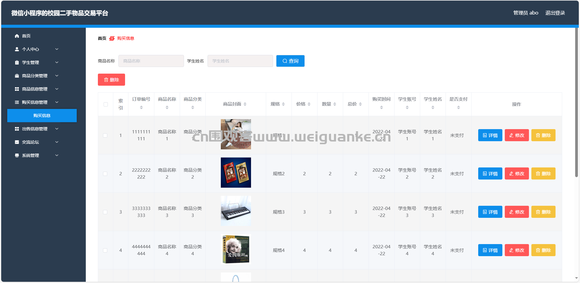 5.购买信息管理:查看、编辑、删除购买信息