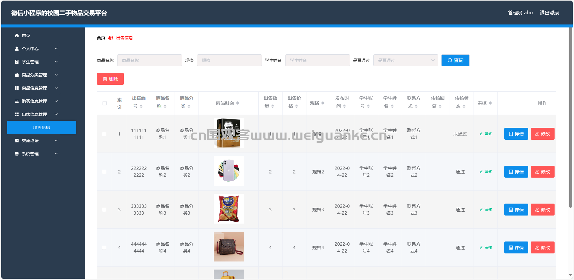 6.出售信息管理:查看、编辑、删除出售信息