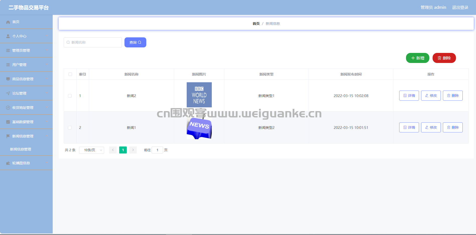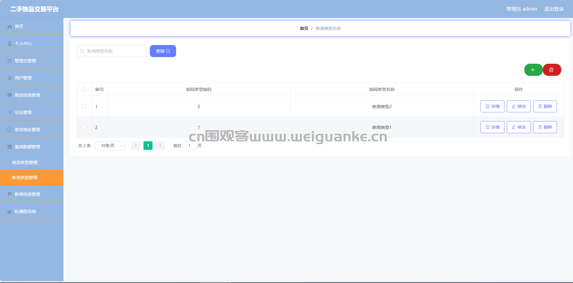 基础数据管理:管理员可以管理商品类型和新闻类型。
