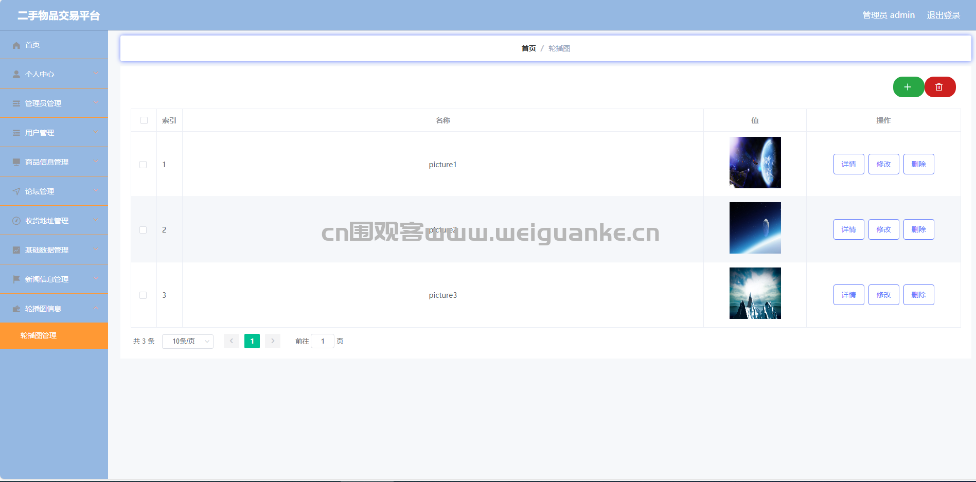 轮播图信息:管理员可以管理首页的轮播图信息。