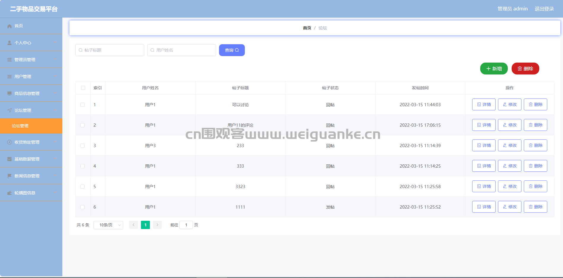 该项目是一个基于SSM(Spring、Spring MVC、MyBatis)后端框架,结合Vue.js前端技术和微信小程序的二手物品交易平台。它旨在为用户提供一个便捷的在线交易环境,支持商品发布、订单管理、用户互动等功能。平台分为用户和管理员两个模块,用户可以发布商品、管理订单和参与论坛讨论,而管理员则负责平台的日常运营和维护,包括用户管理等。通过整合微信小程序,该平台还提供了移动端的便捷访问,增强了用户体验。