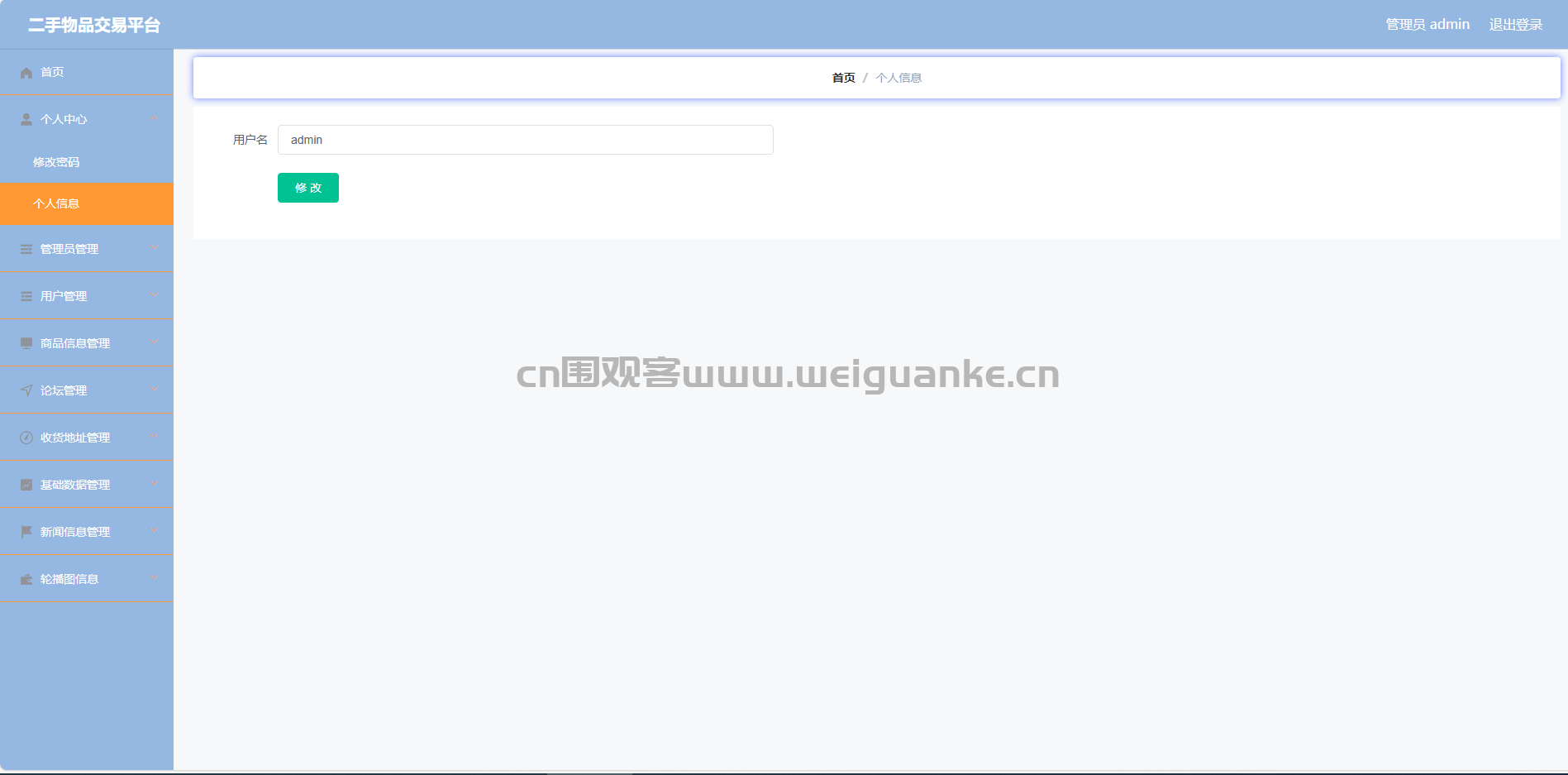登录网址: http://localhost:8080/ershoujiaoyi/admin/dist/index.html