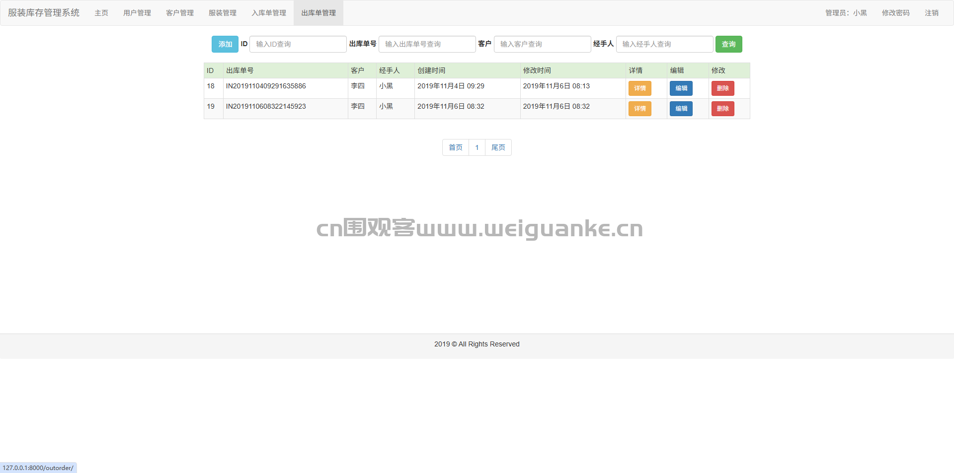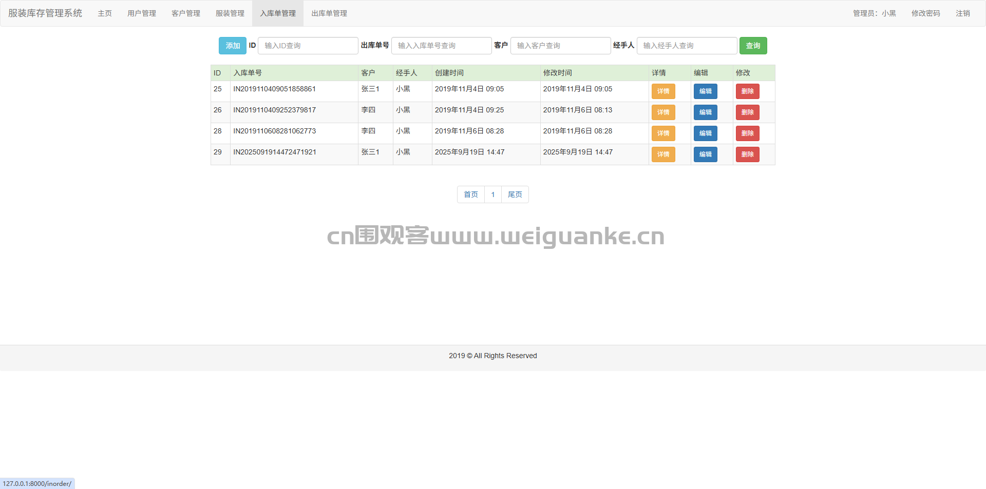基于 django+sqlite服装仓库管理系统。通过bootstrap框架进行开发