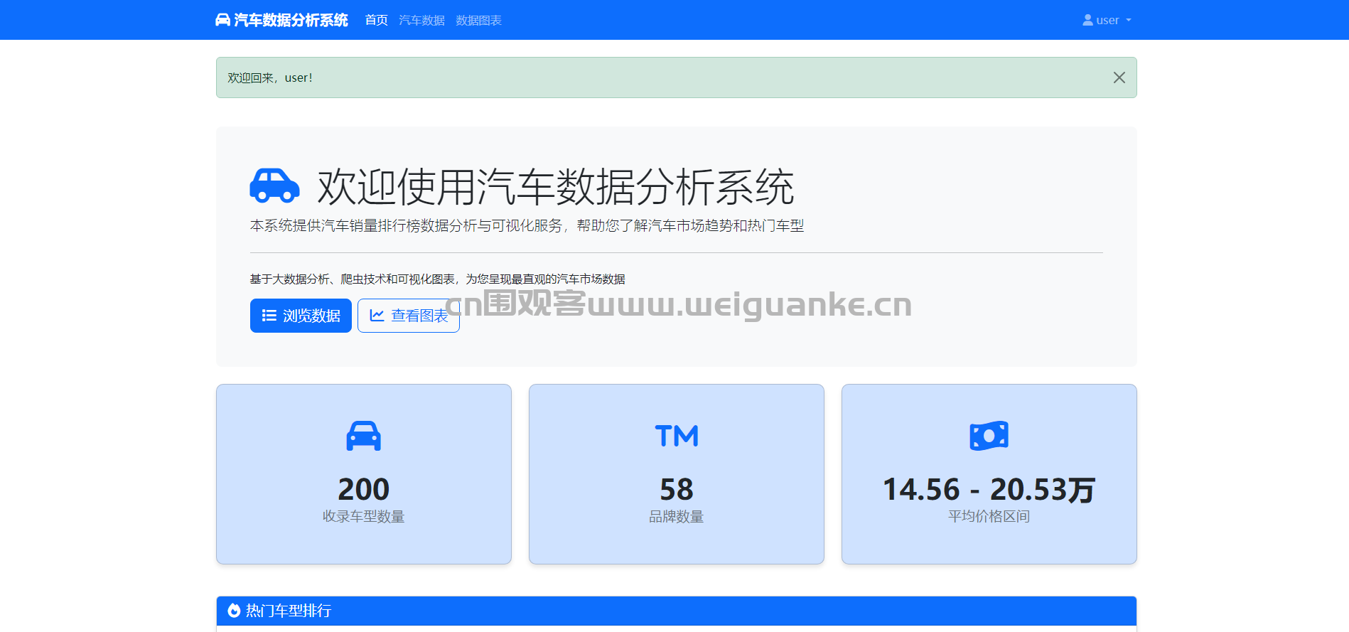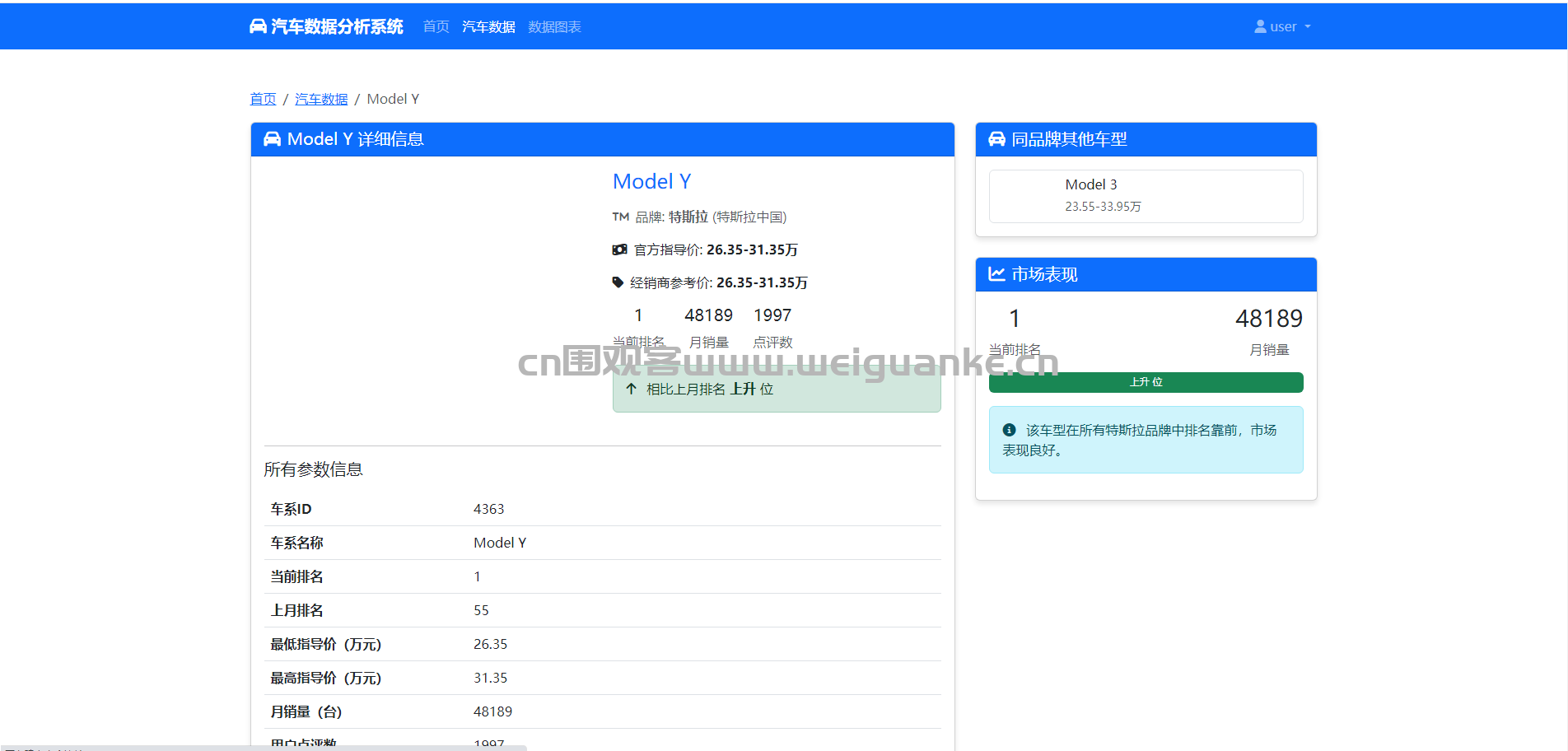 基于基于Django框架的汽车数据分析与可视化系统。通过Bootstrap、ECharts和MySQL技术进行开发
