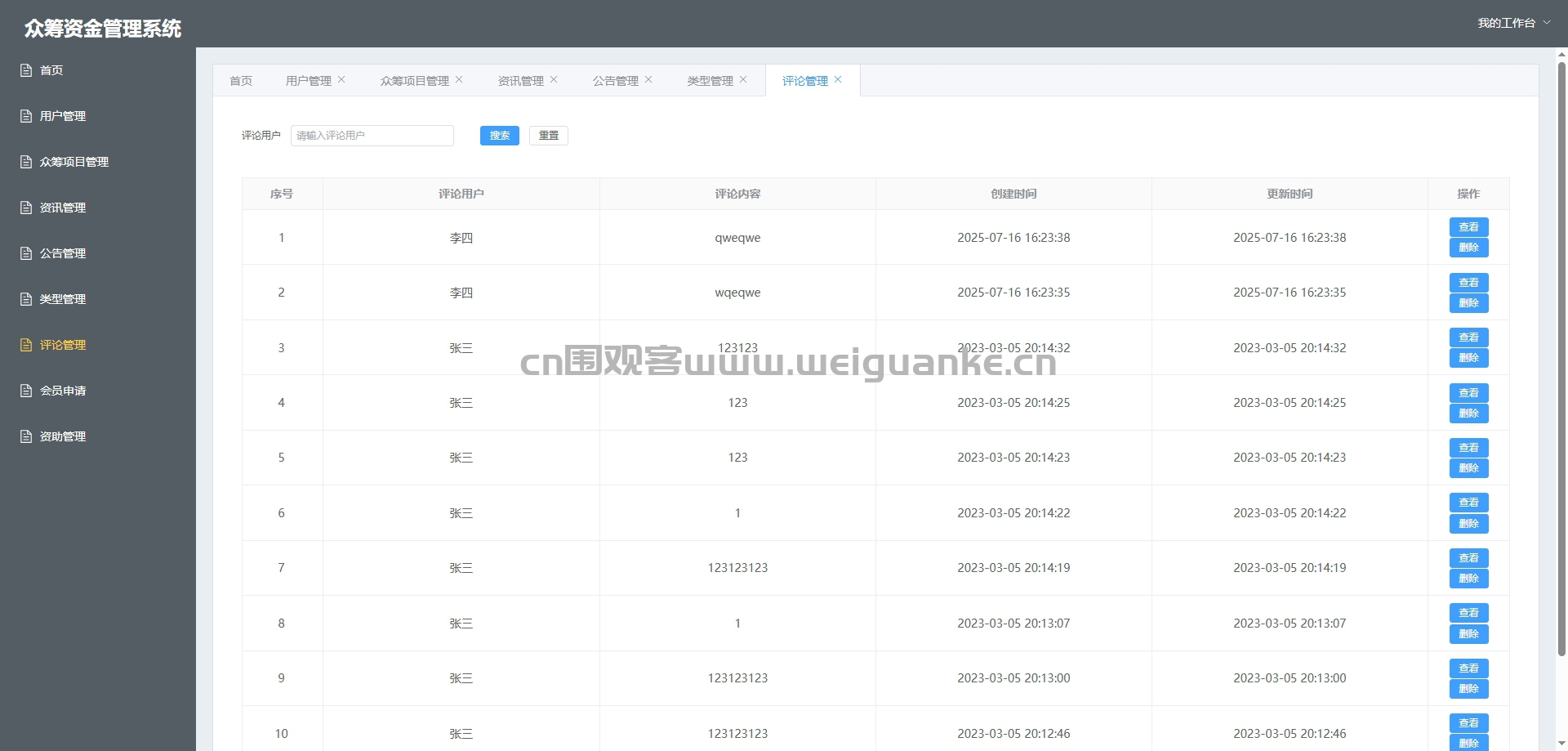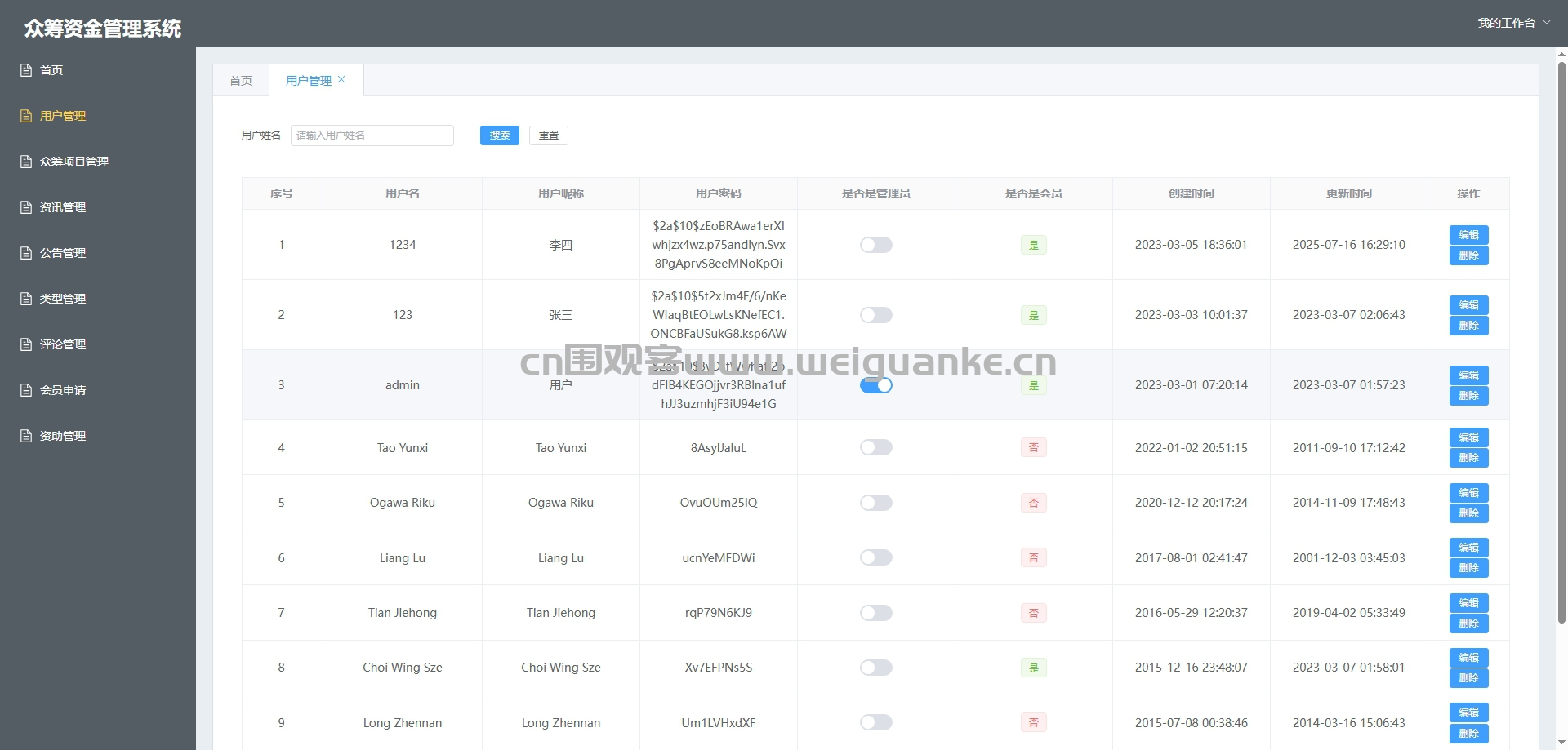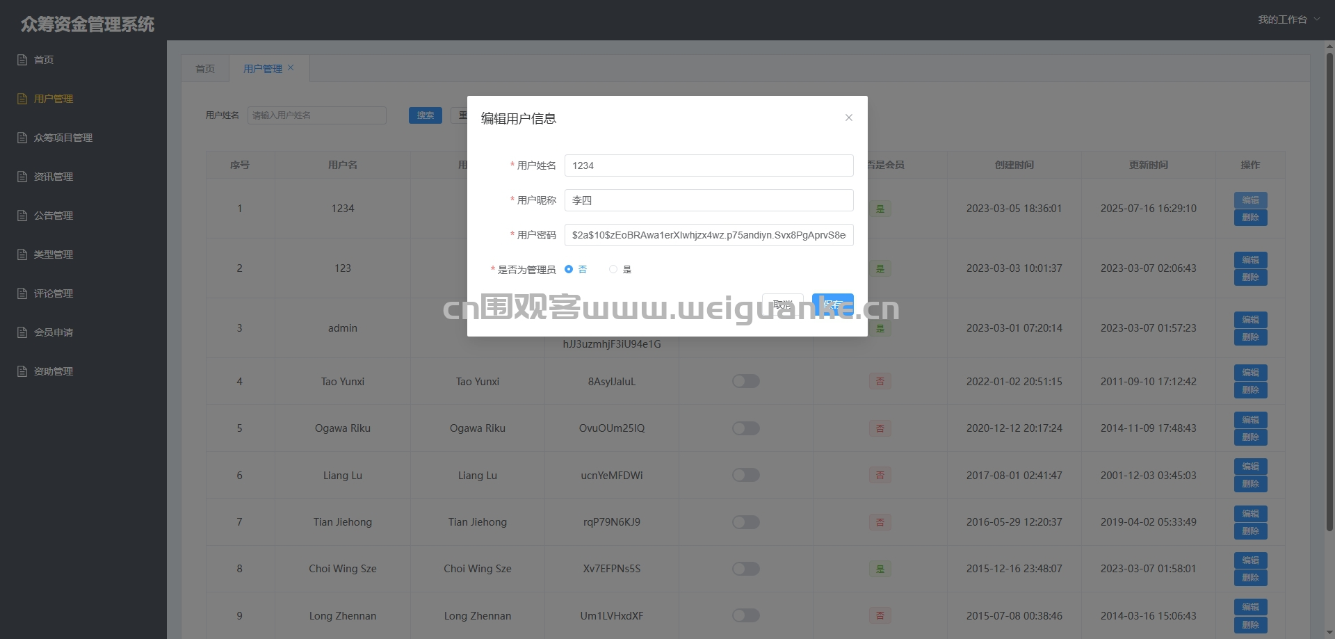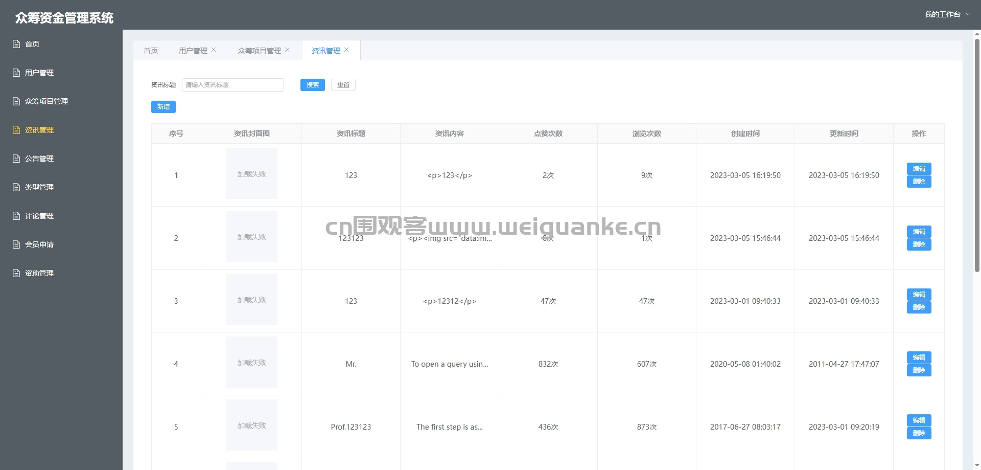 众筹项目管理:管理平台所有众筹项目的审核与运营