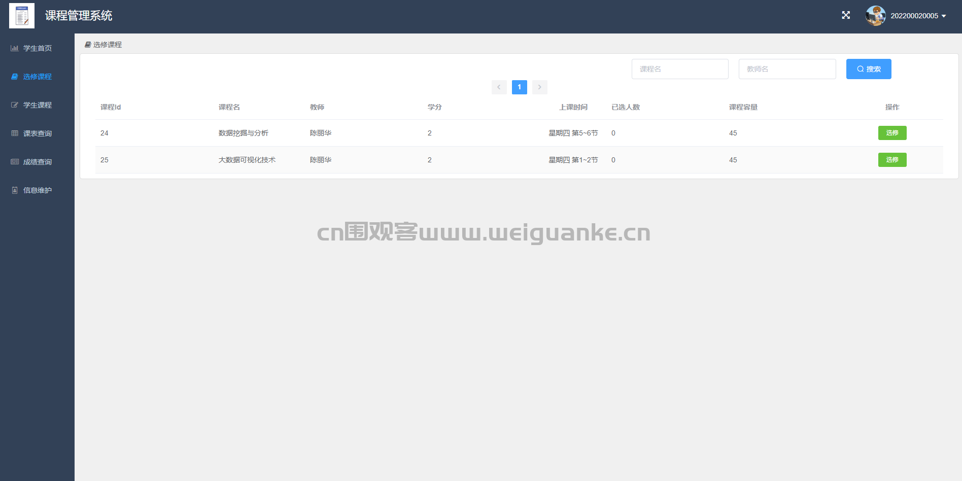 课表查看:查看已选课程和课表安排。