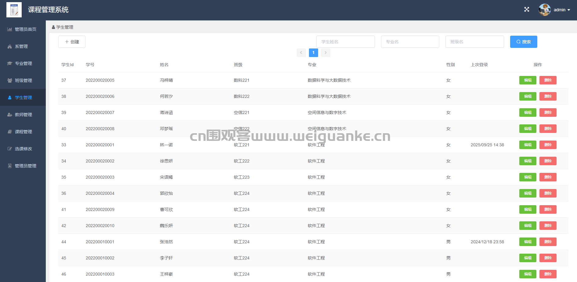 班级管理:管理班级的相关信息。