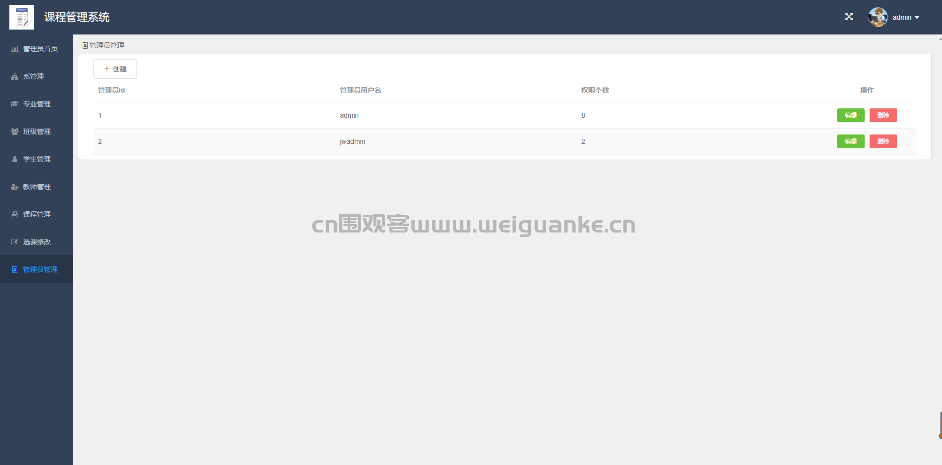 管理员管理:灵活设置不同权限的教务管理员。