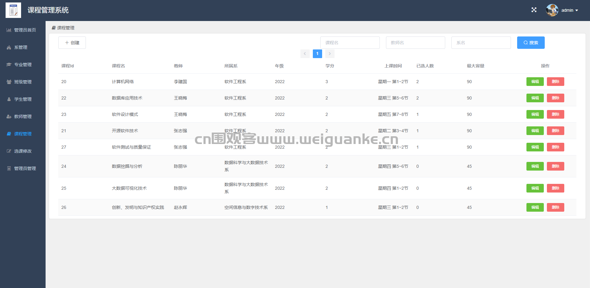 课程管理:管理课程的创建与维护。
