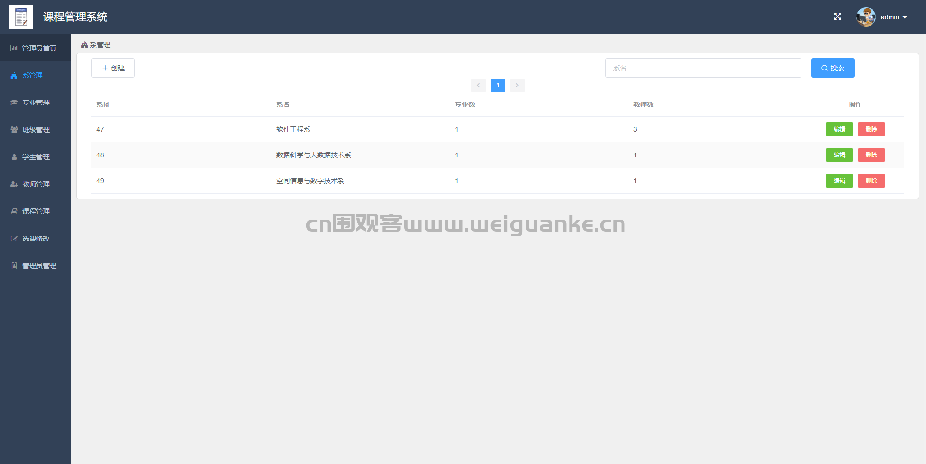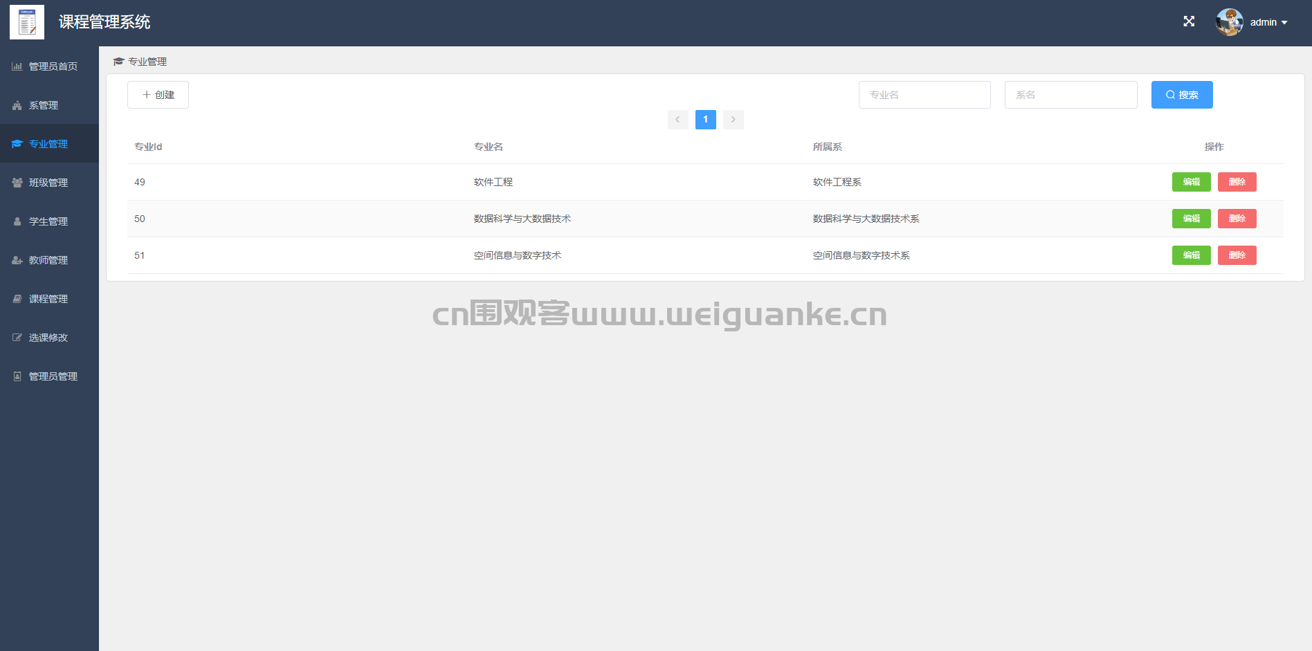 专业管理:对各系下的专业进行管理。