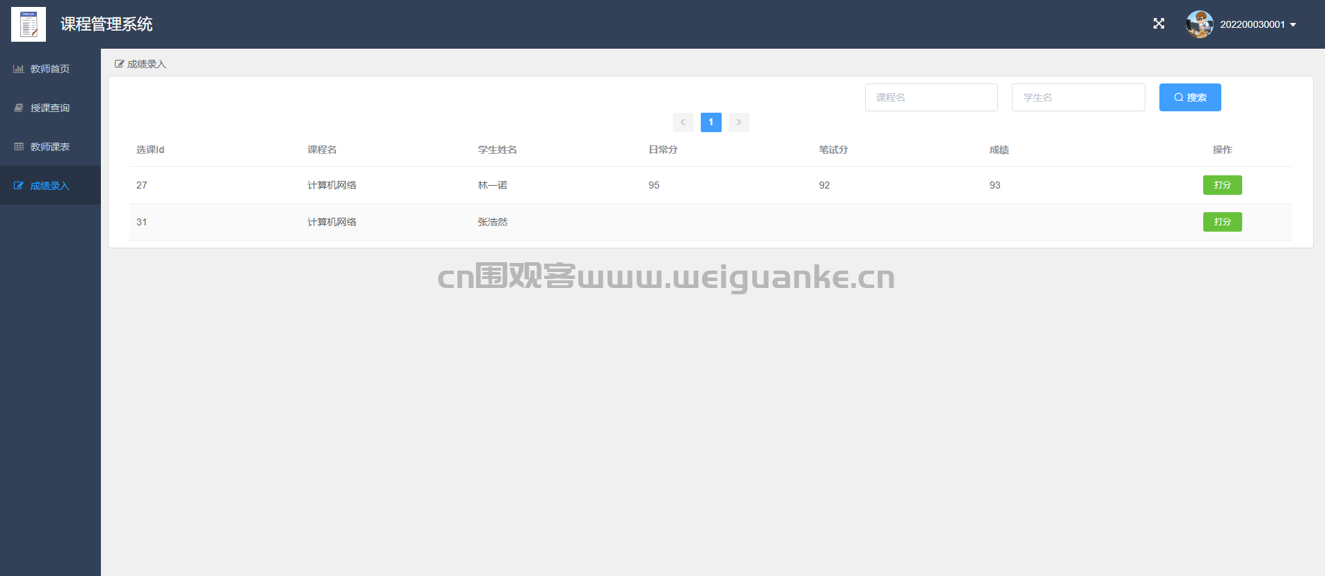 成绩录入:为学生录入成绩,支持批量操作。