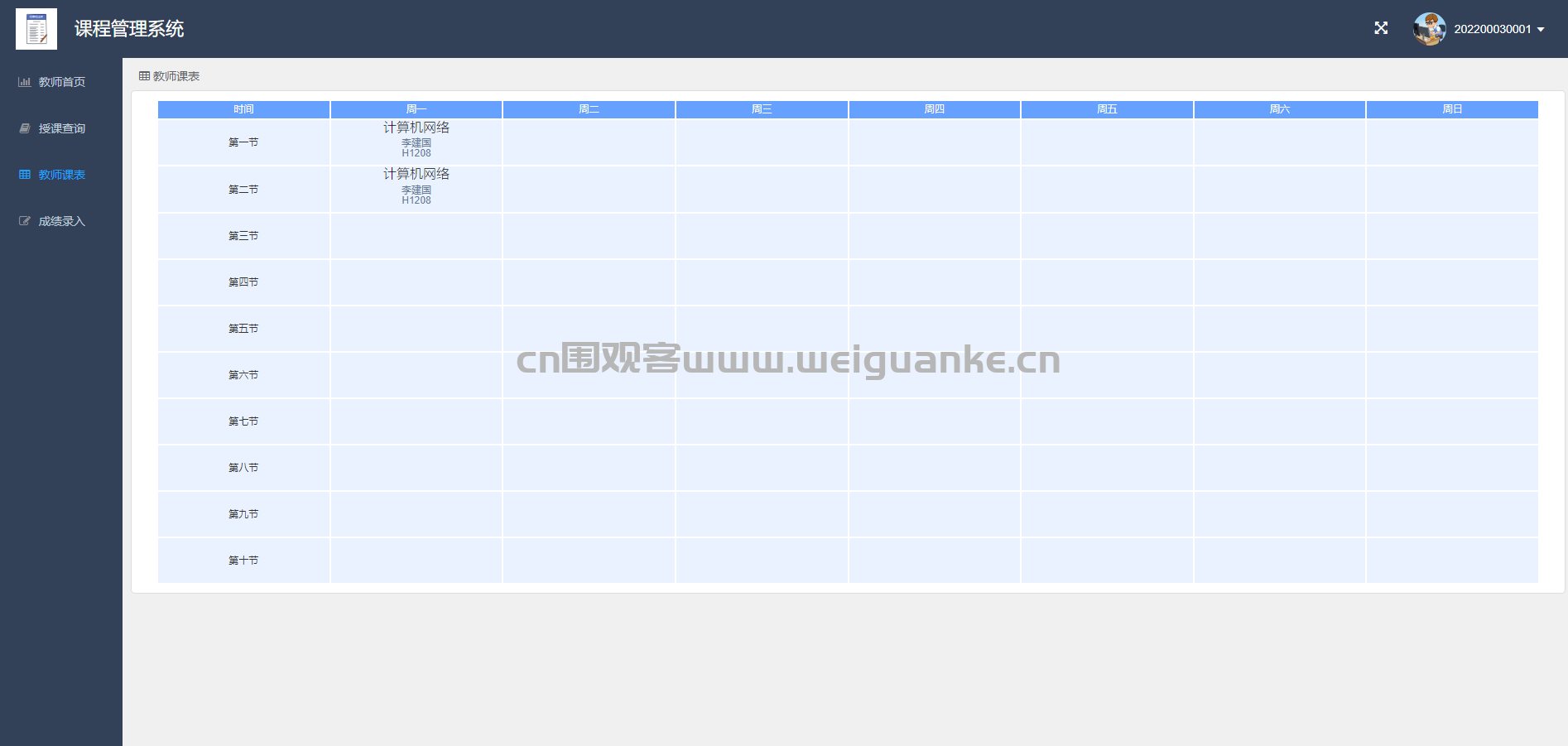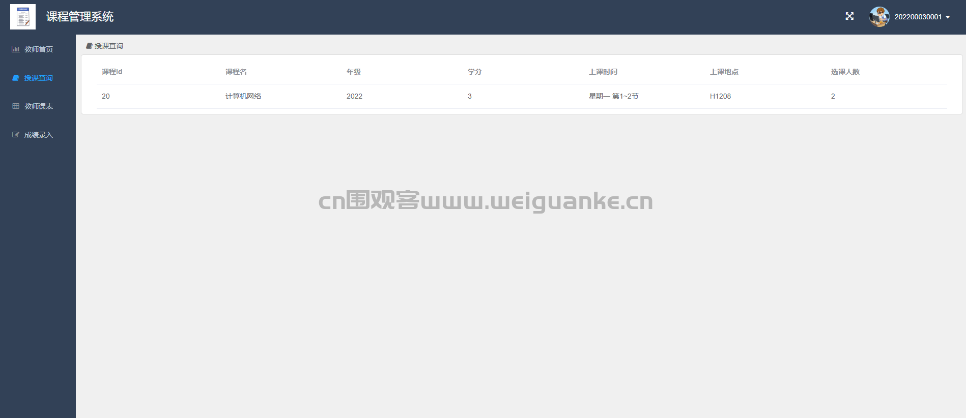 授课查询:查询自己的授课安排。