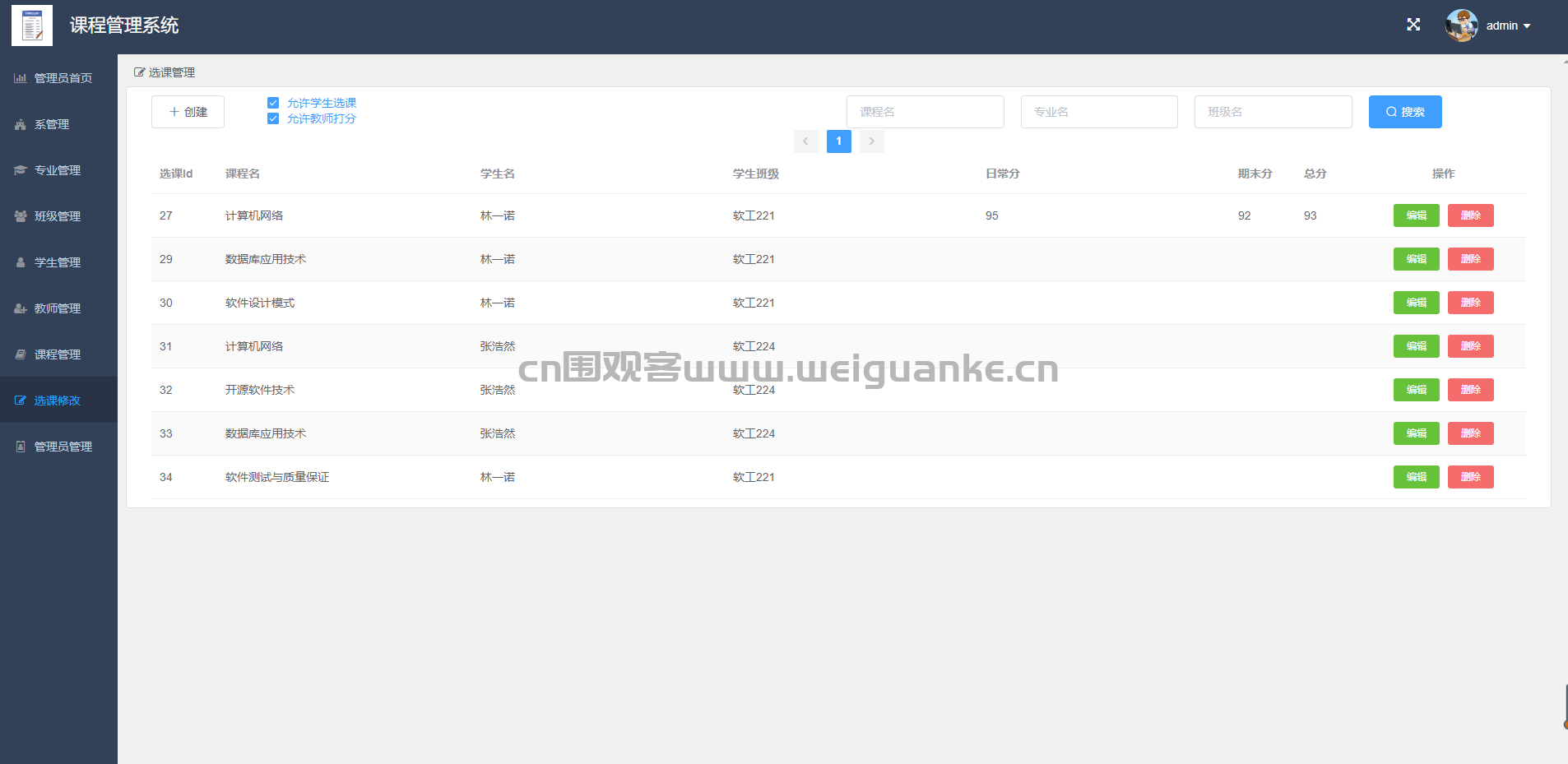选课管理:审核选课情况、修改选课信息。